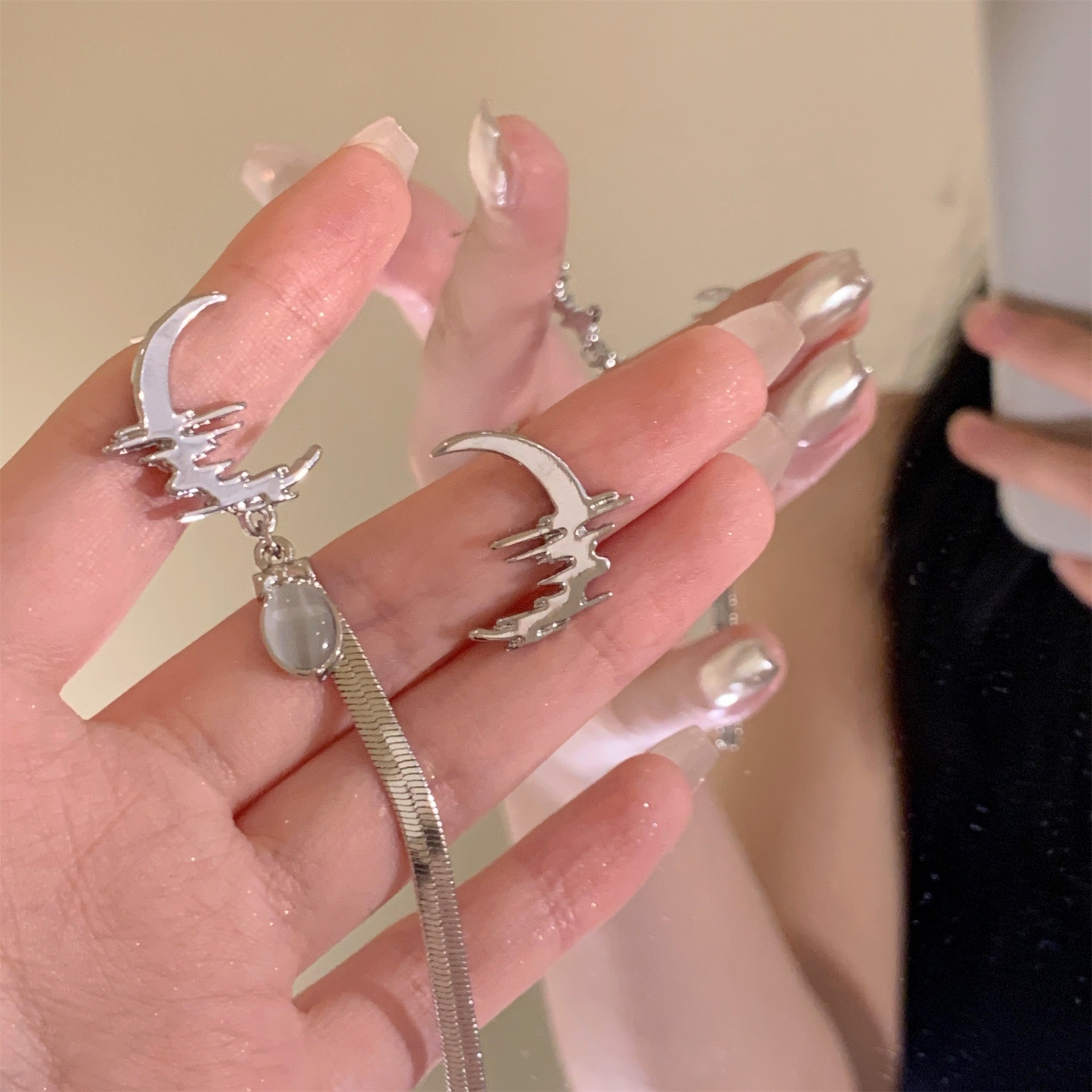 Crescent-shaped Asymmetric Tassel Earrings