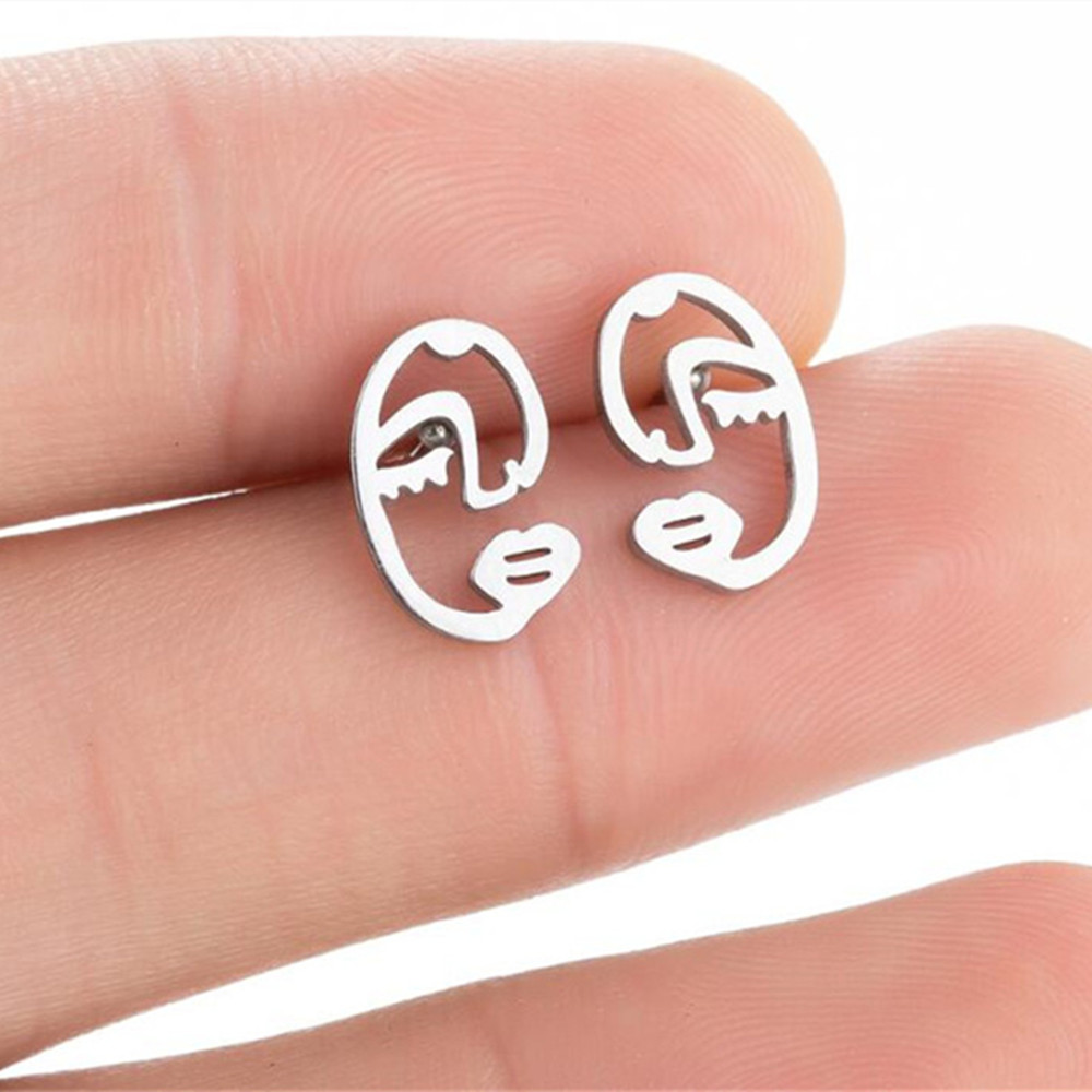 Product Details:Material: Stainless steelType: Stud EarringsStyle: UnisexShape: human face earringsColor: gold, steel, rose, matte blackPackage Contents:Earrings X1 pair