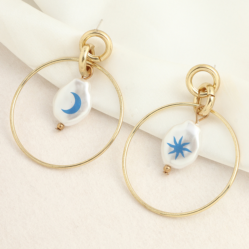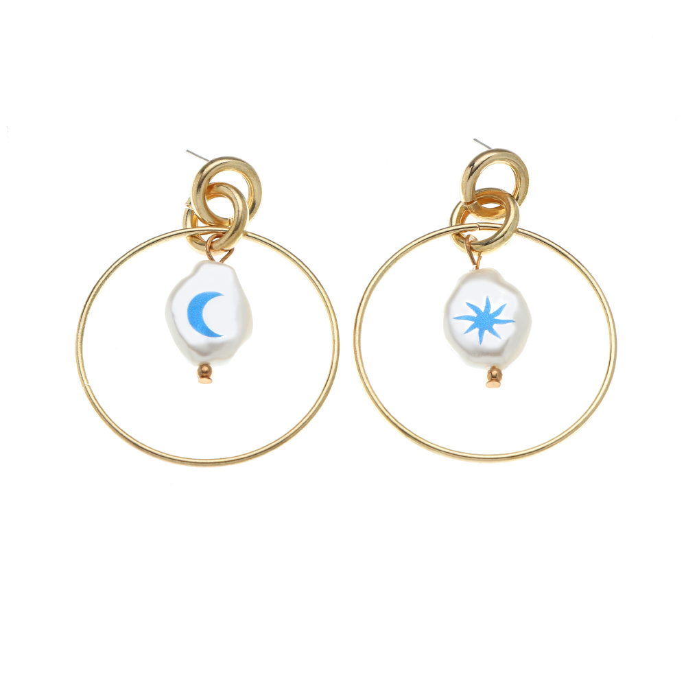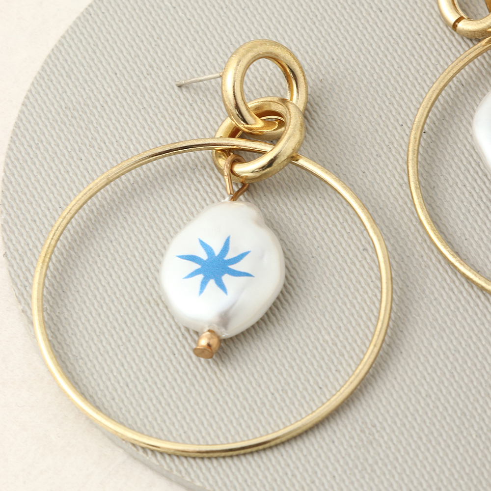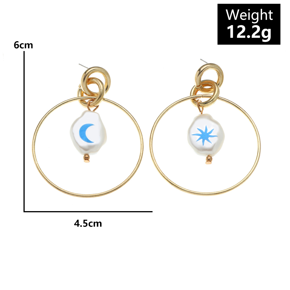 Product Information:Style: Europe and AmericaMaterial: iron + special-shaped pearlTreatment process: electroplatingType: EarringsStyle: Women'sModeling: GeometryPacking List:Earrings*1