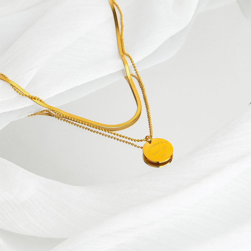 Product information:Treatment Process: Electroplating Color: gold double-layer necklace Applicable population: Female Chain style: Blade chain Material: titanium steel Popular elements: round