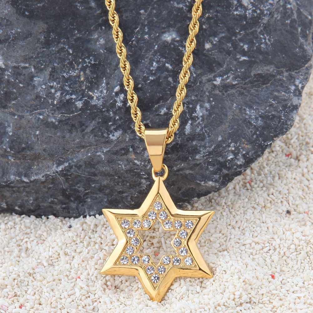Product Information:Material: AlloyStyle: Europe and AmericaStyle: UnisexModeling: hexagonal starTreatment process: electroplatingColor: Gold