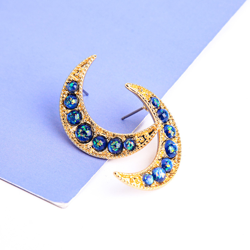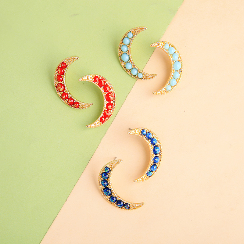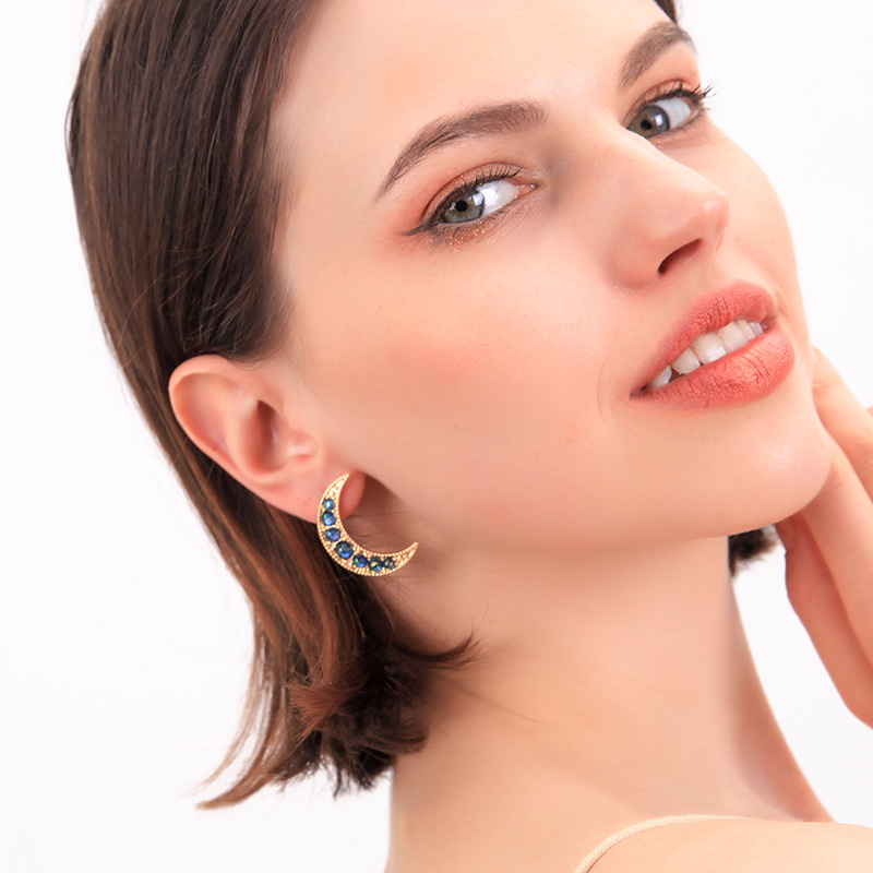 Style: Korean style/Korean styleMaterial: AlloyProcessing technology: diamondType: EarringsStyle; women'sModeling; moonInlaid material; alloy inlaid artificial gems/semi-precious stonesColor: red-1, light blue-2, dark blue-3