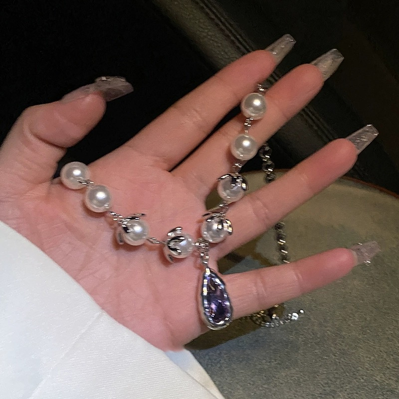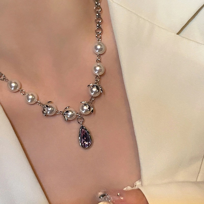 Purple Droplet Pearl Stitching Necklace For Women