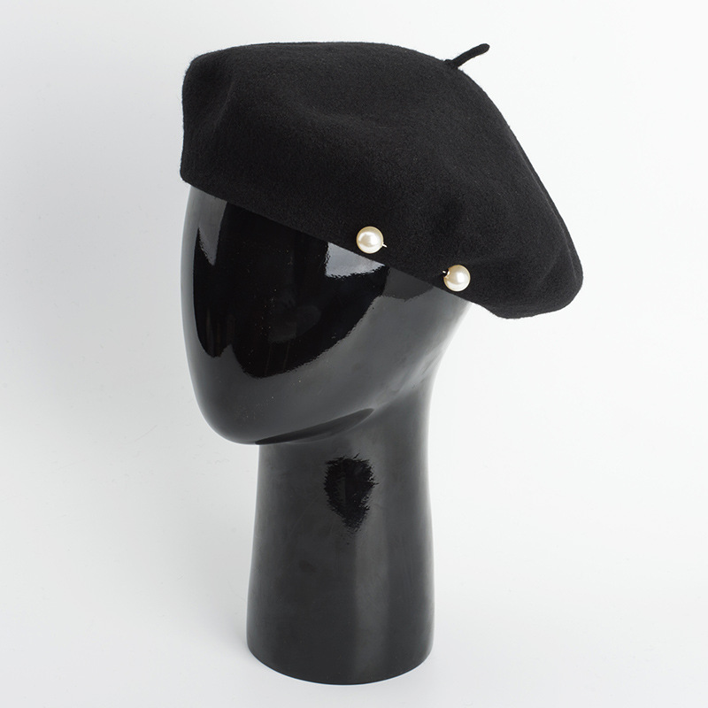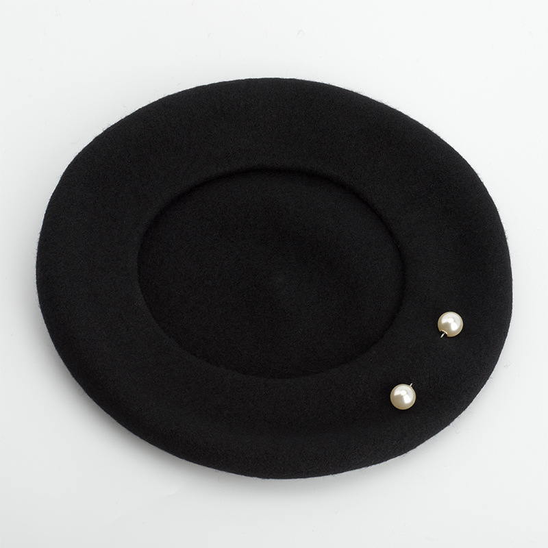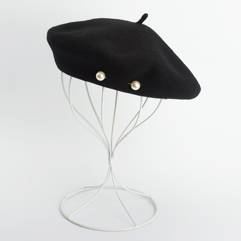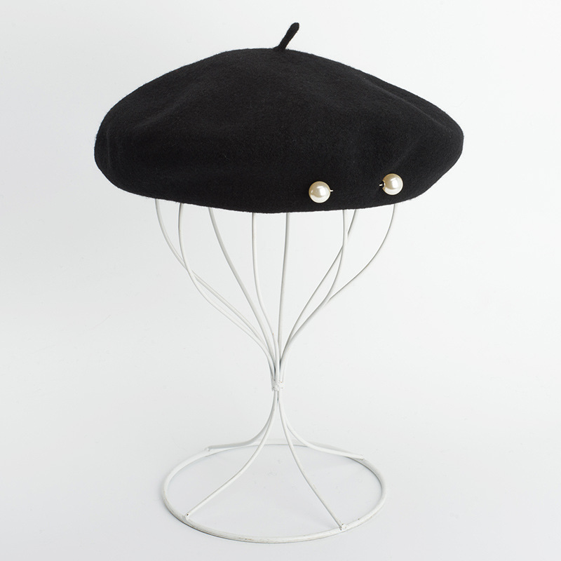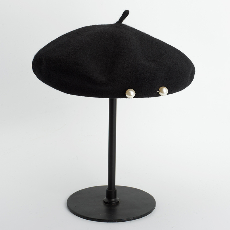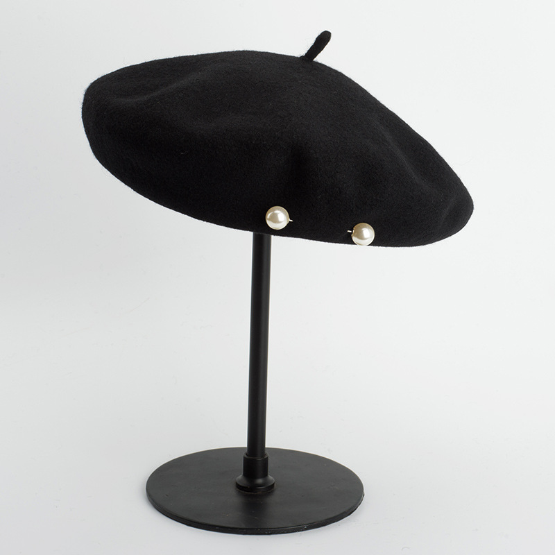Product category: beretApplicable gender: FemaleMaterial: WoolStyle: KoreanWeaving method: warp knittingProcessing method: tie dyePopular elements: light bodyEaves: CurledCap style: domeHat style: no eavesColour: Black Size; adjustable