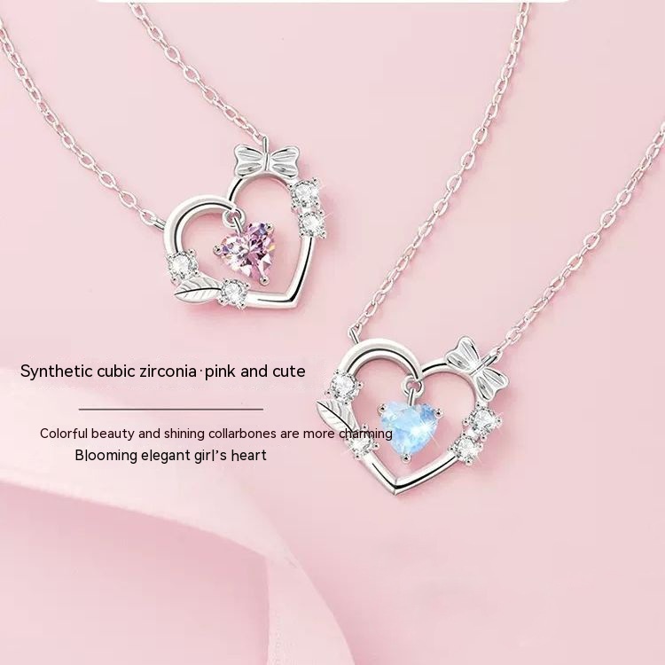 Color: Moonstone sweetheart necklace, pink diamond sweetheart necklace