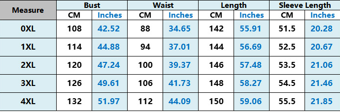 Size: 0XL, 1XL, 2XL, 3XL, 4XL