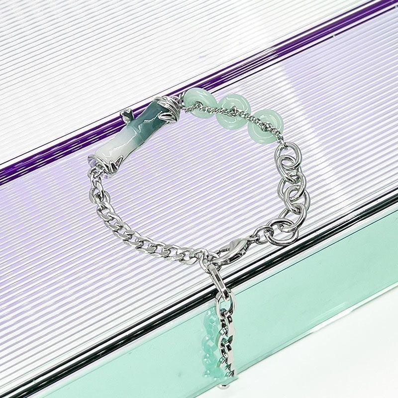 Product Details:Material: AlloyTreatment process: electroplatingStyle: UnisexShape: rhombus, drop shapeColor: Bamboo Safety Buckle BraceletPackage Contents:Bracelet X1