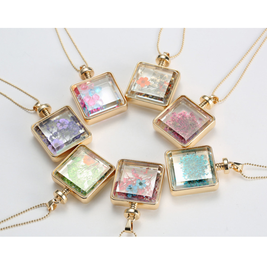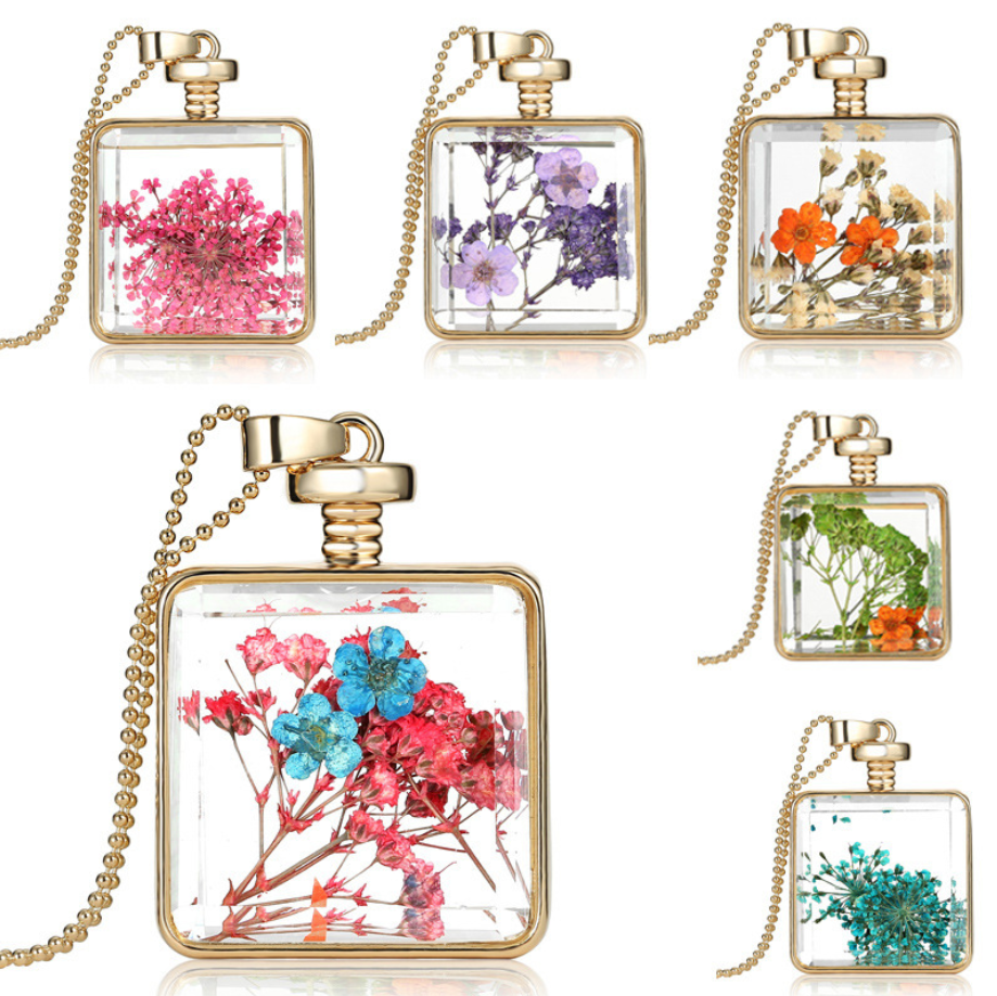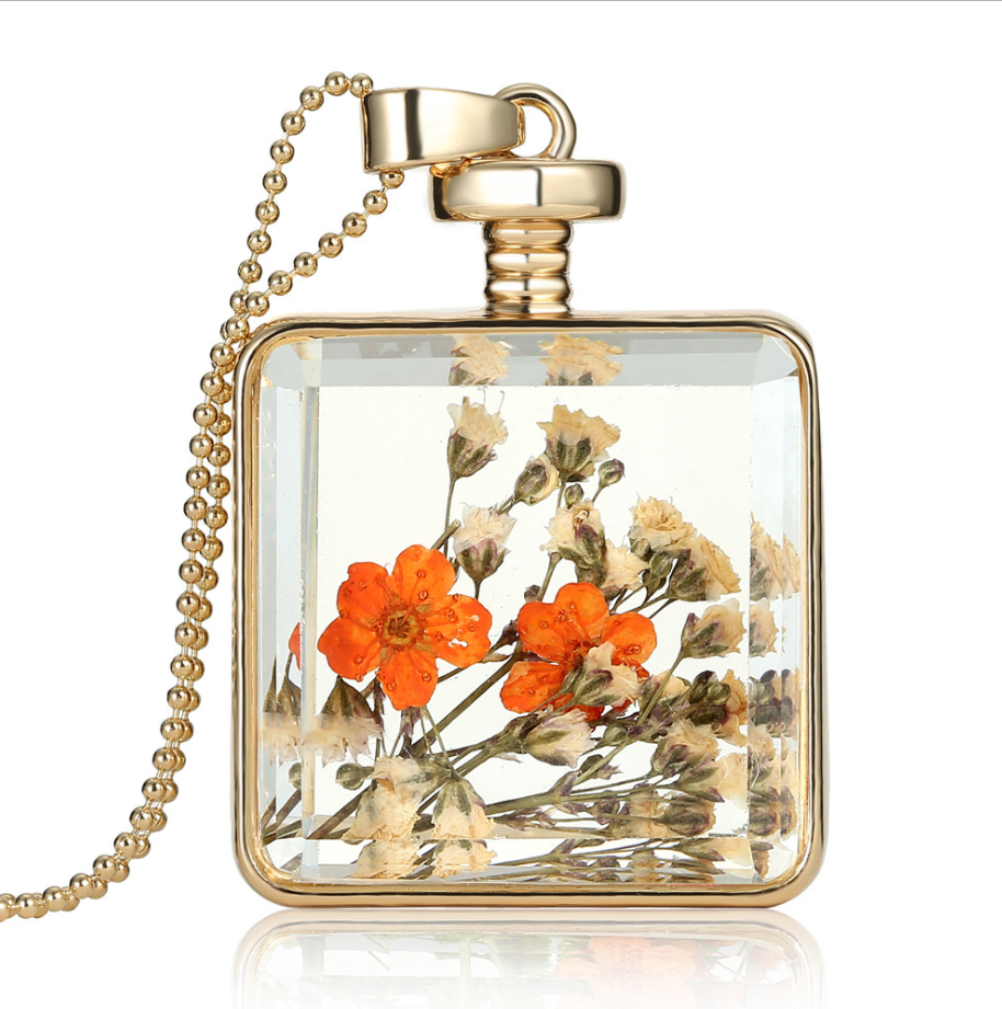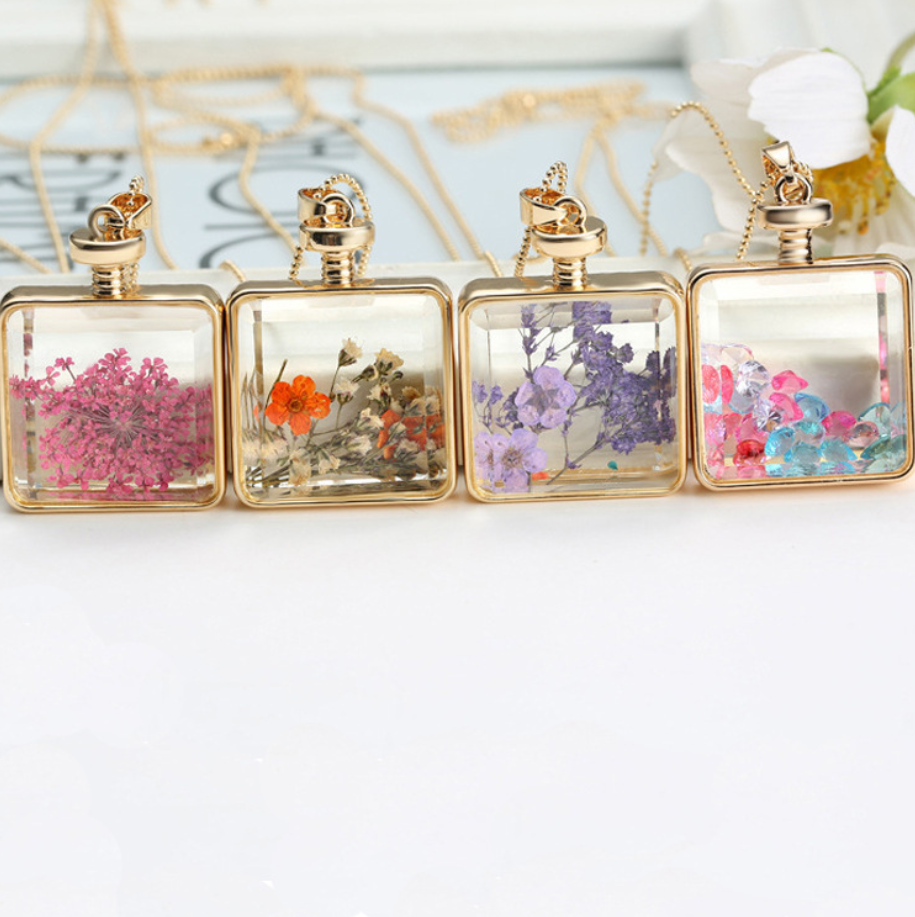 Dried flower specimen square pendant
