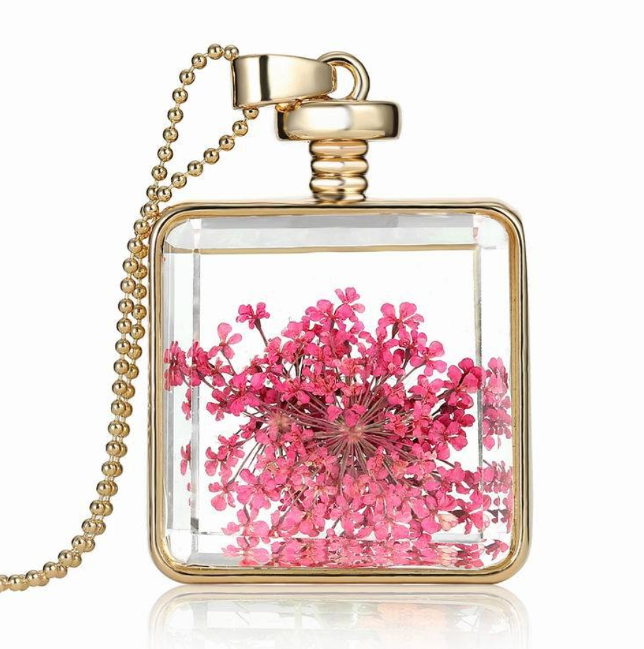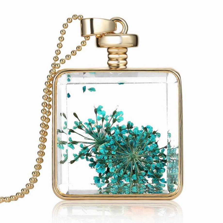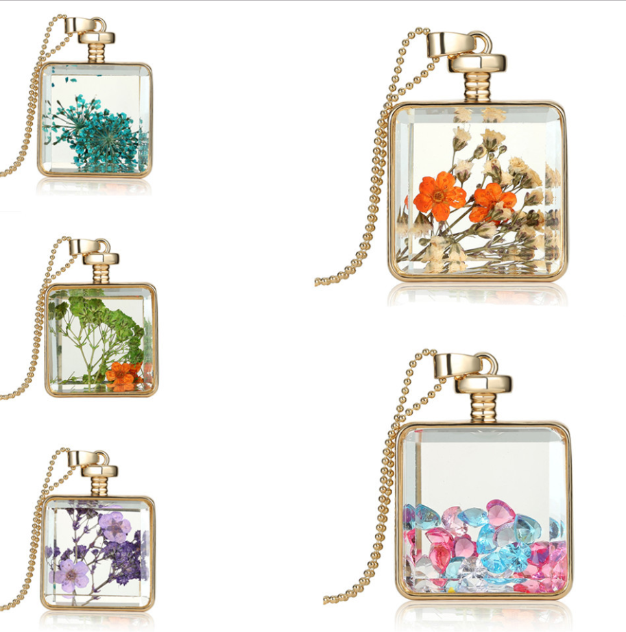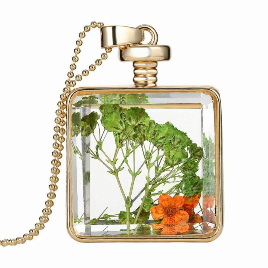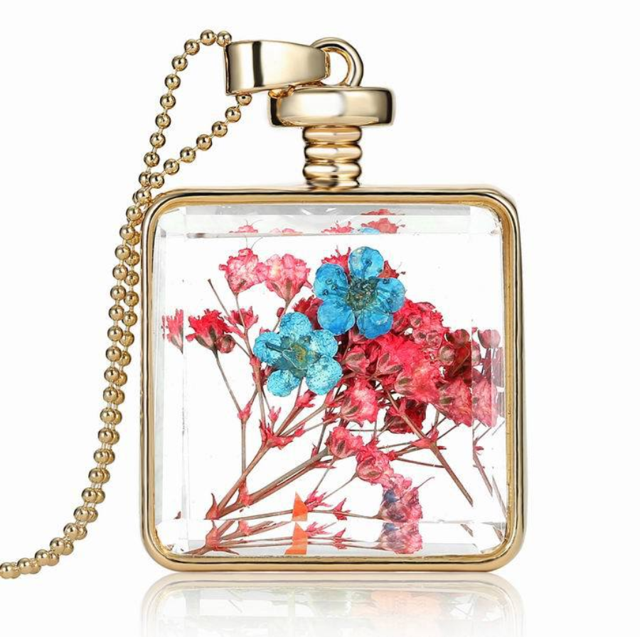 Dried flower specimen square pendant