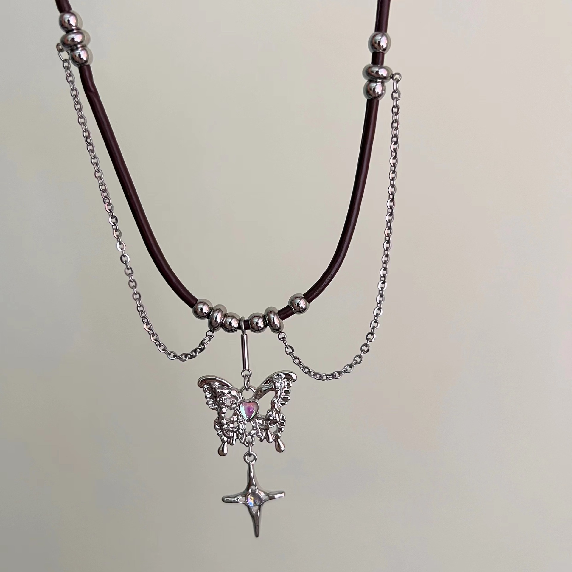Product information:Treatment Process: Electroplating Color: leather rope style Applicable population: Female Chain style: clavicle chain Material: Alloy Shape: Bow, star Perimeter: 41cm (inclusive)-50cm (inclusive)