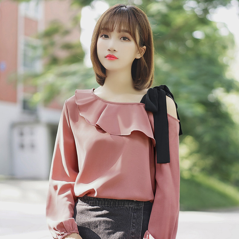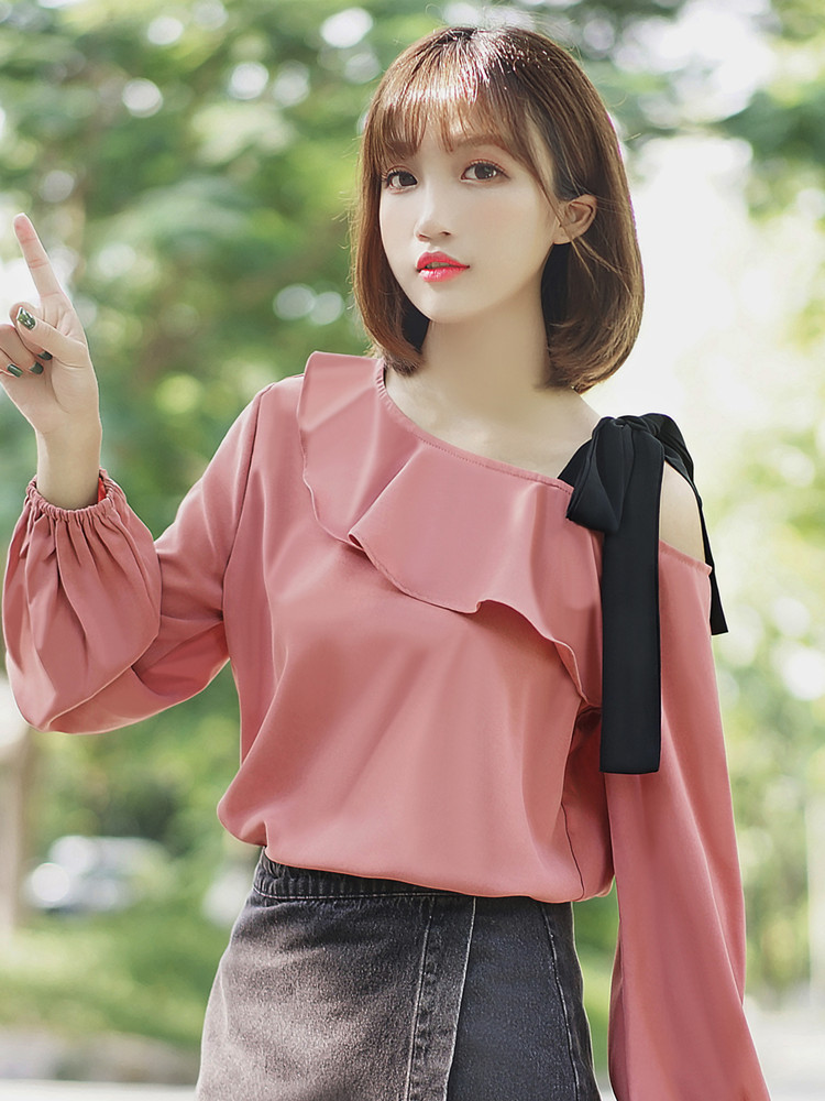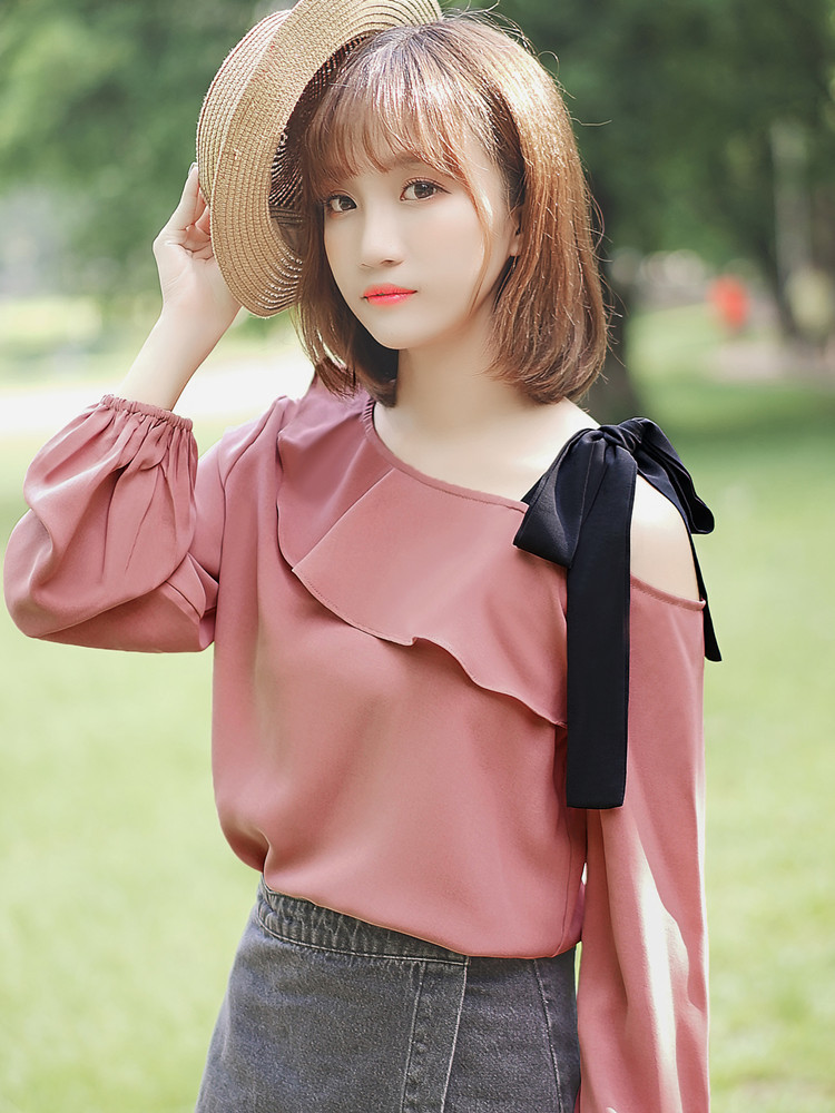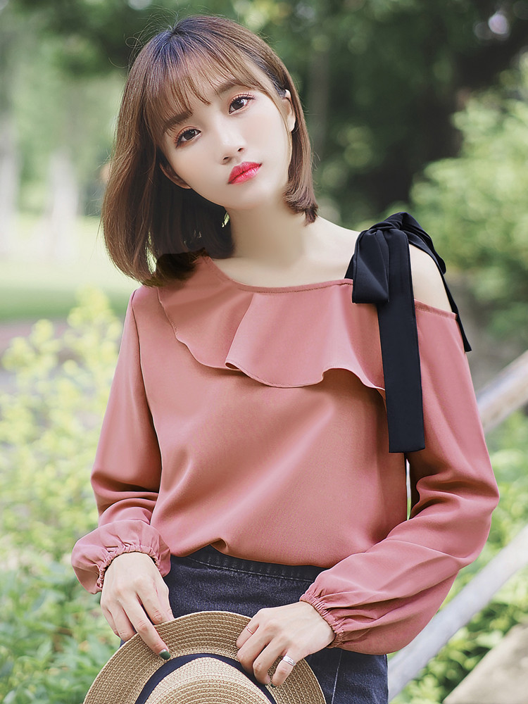 Women's Ruffle Blouse With One Word Off-shoulder Bottoming Shirt