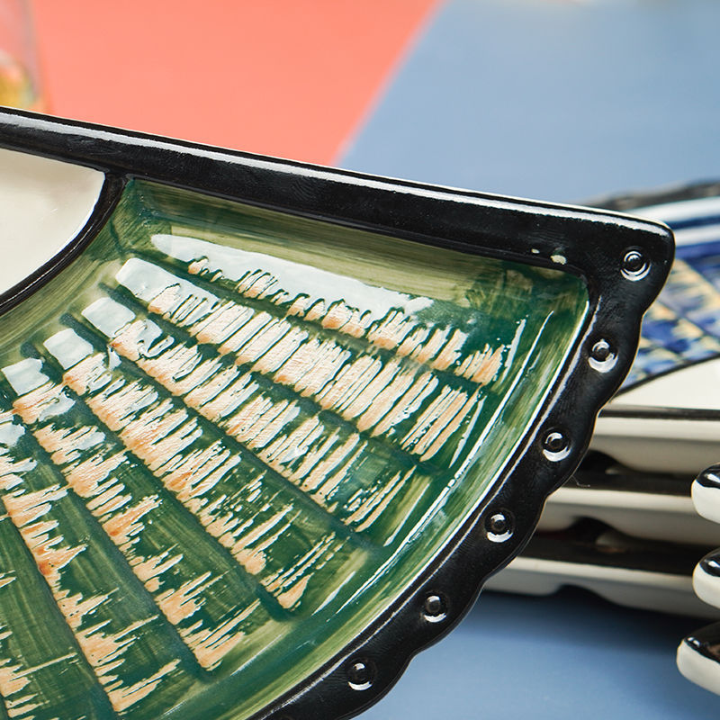 Material: CeramicStyle: fashion and simplicityFeatures: Fan shapeColour: blue, yellow, red, green