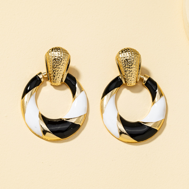 Product information:Color: E286 black and white, E286 blue and green Material: Alloy Shape: Geometry Style: NaturalSize Information:5cm