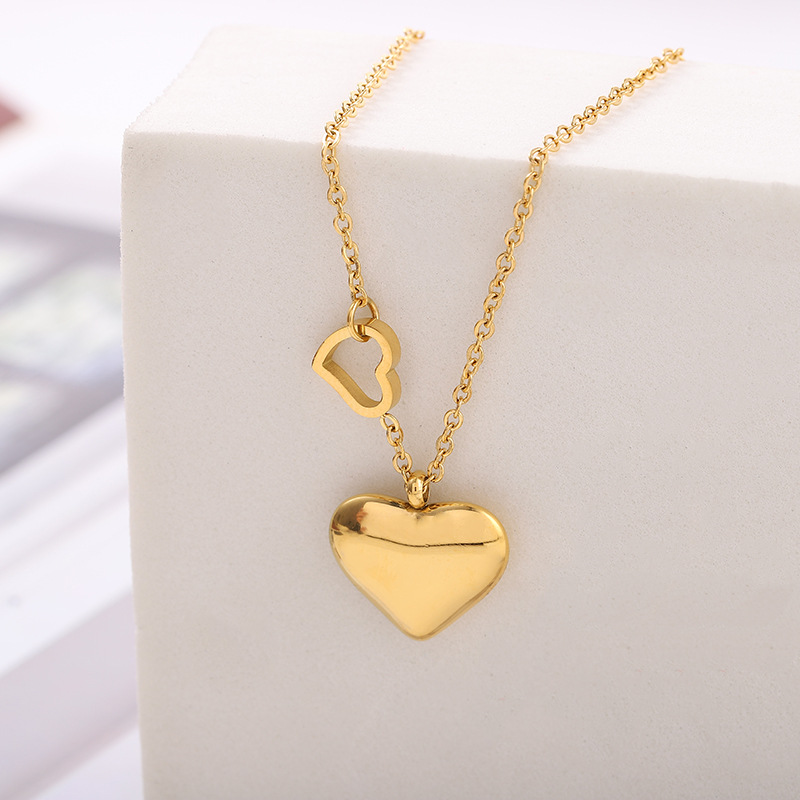 Peach Heart Titanium Steel Necklace Double Chain 18K Gold Cold Wind Jewelry