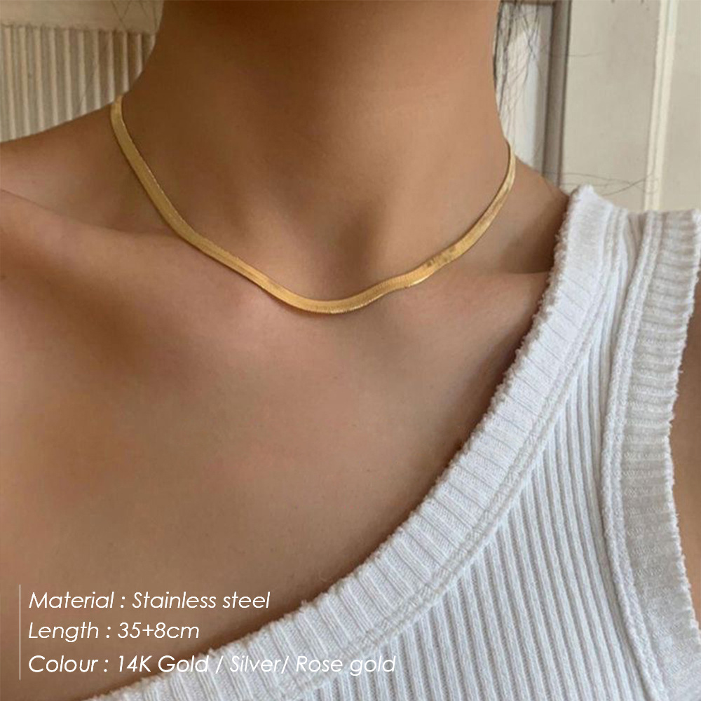 Material: stainless steelTreatment process: electroplatingColor: steel, gold, rose goldWeight: 2g/pieceSize: perimeter 35CM+8CM