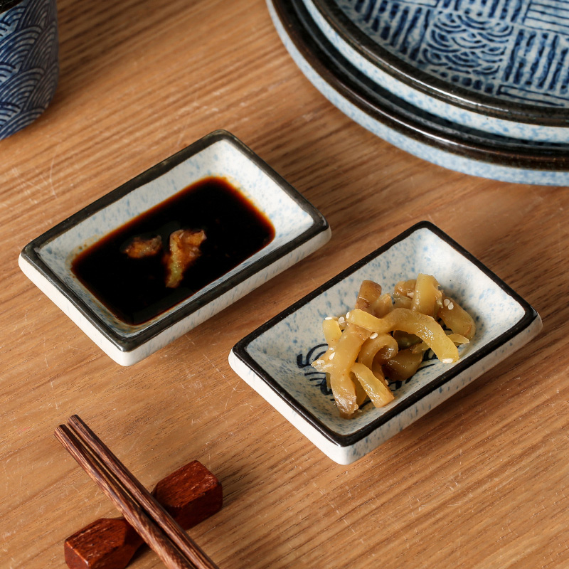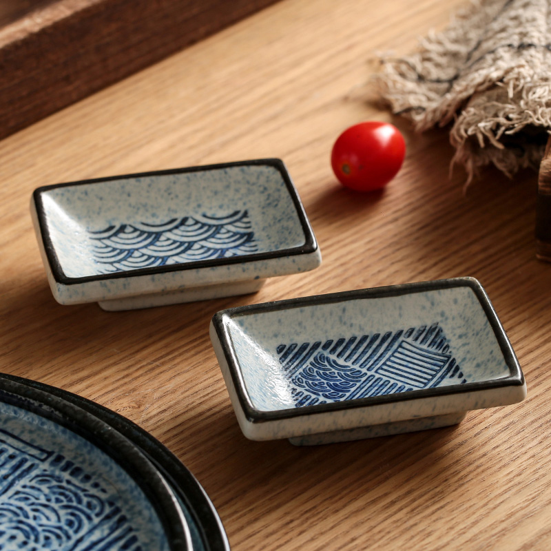 Material: PorcelainStyle: JapaneseShape: RectangleSize: 3.5 inchesTea tableware technology: underglaze colorApplicable to: households, restaurants, sushi restaurants, taverns, hotels, etc