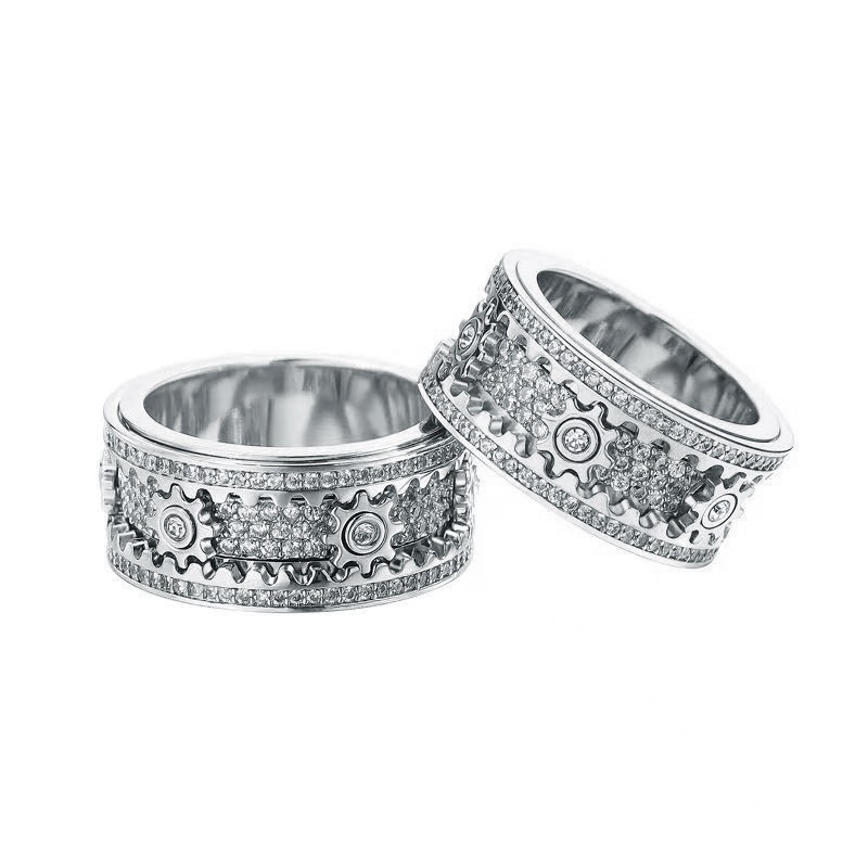 Color: the rotatable gear ring is white and gold, and the gear is full of rose gold rings.