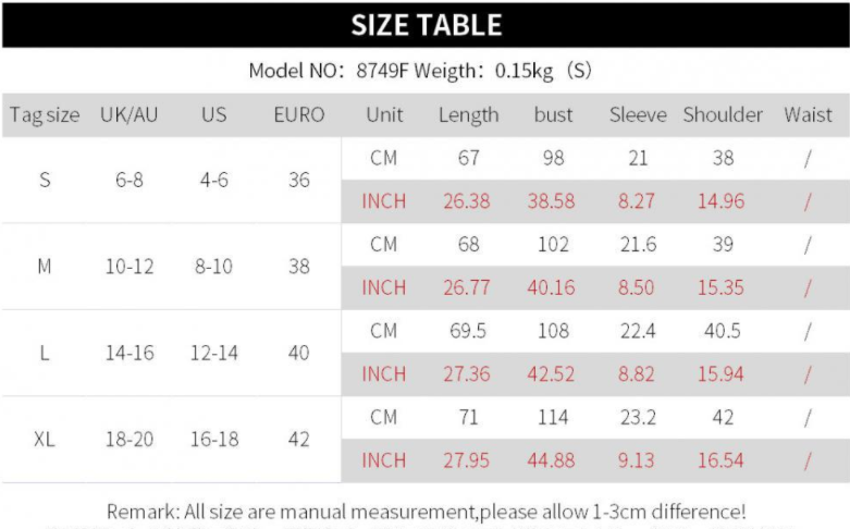 1. Asian sizes are 1 to 2 sizes smaller than European and American people. Choose the larger size if your size between two sizes. Please allow 2-3cm differences due to manual measurement.