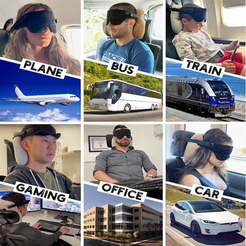 Product information:Color: Black Specifications: Eye Mask (28 * 12cm), adjustable fixing band 2 M; Headrest (25*30 * 5cm) Material: Nylon