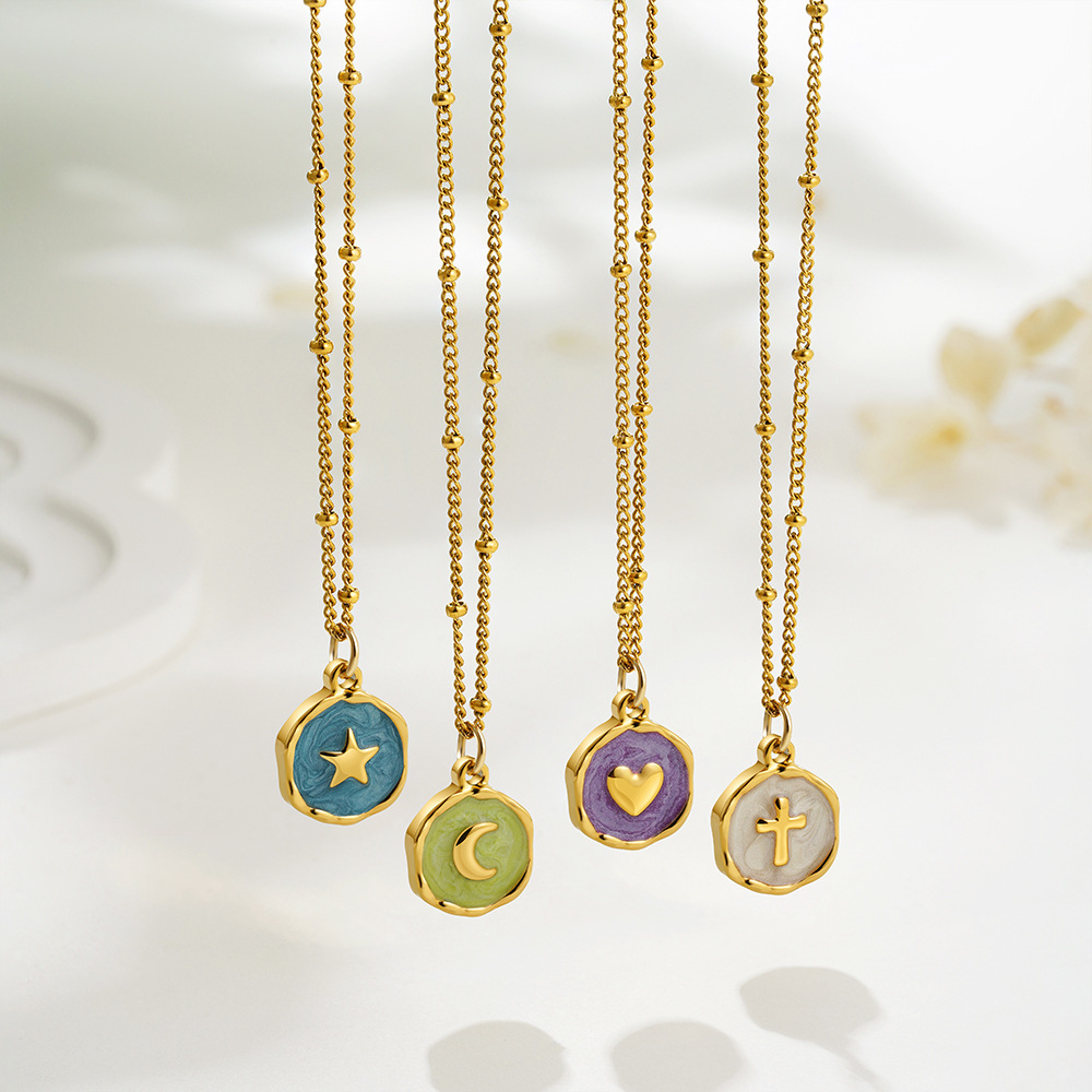 Color: Moon, purple love, White Cross, blue five-pointed star