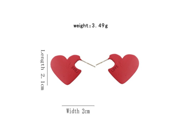Style: SimpleMaterial: AlloyTreatment process: electroplatingType: EarringsStyle: Women'sShape: Heart shapeApplicable gift-giving occasions: employee benefits, weddings, travel souvenirsInlay material: not inlay