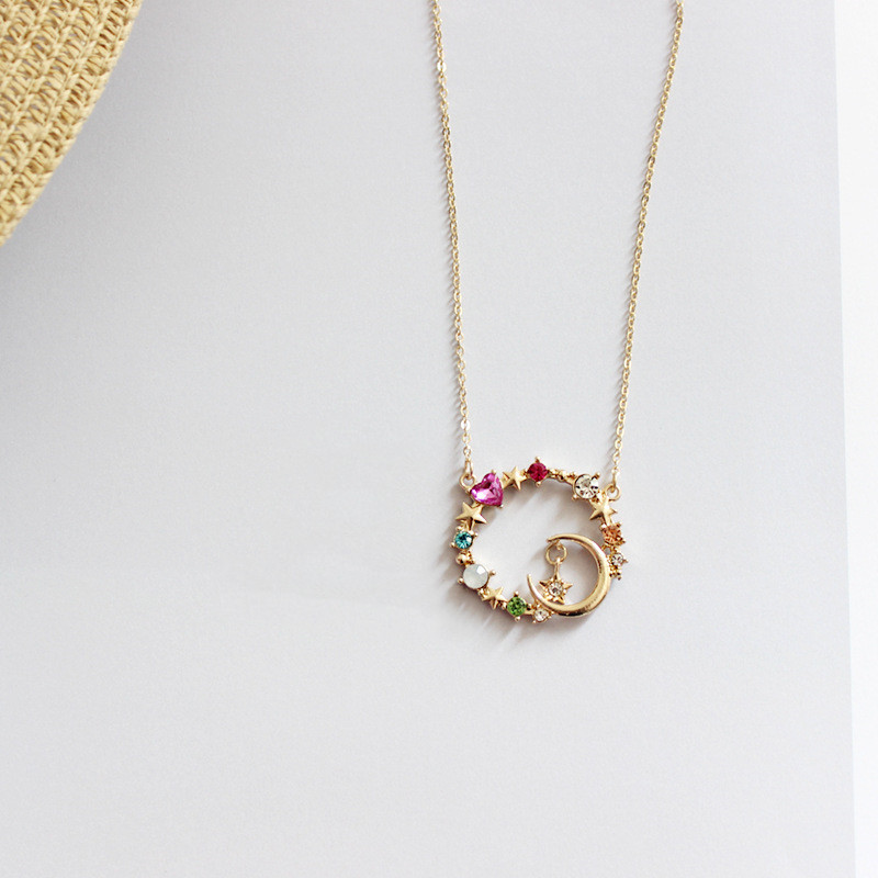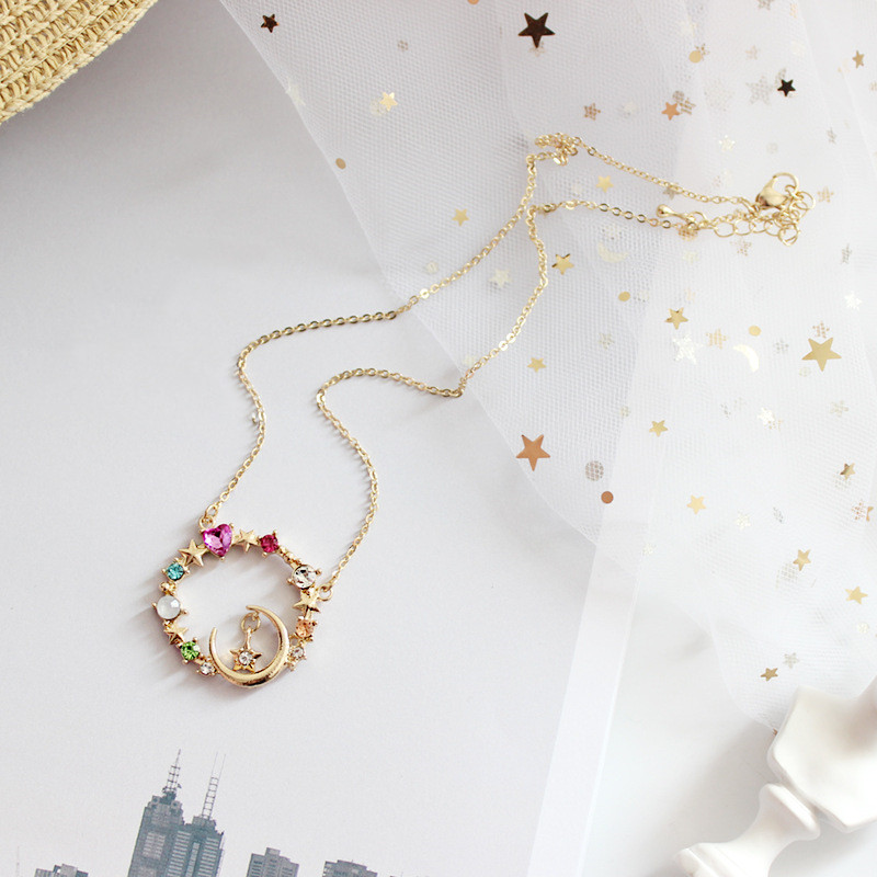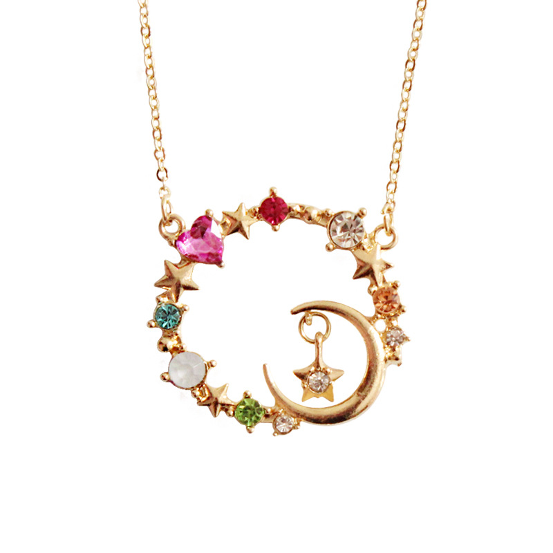 Star Moon Wreath Diamond Peach Heart Jewel Necklace