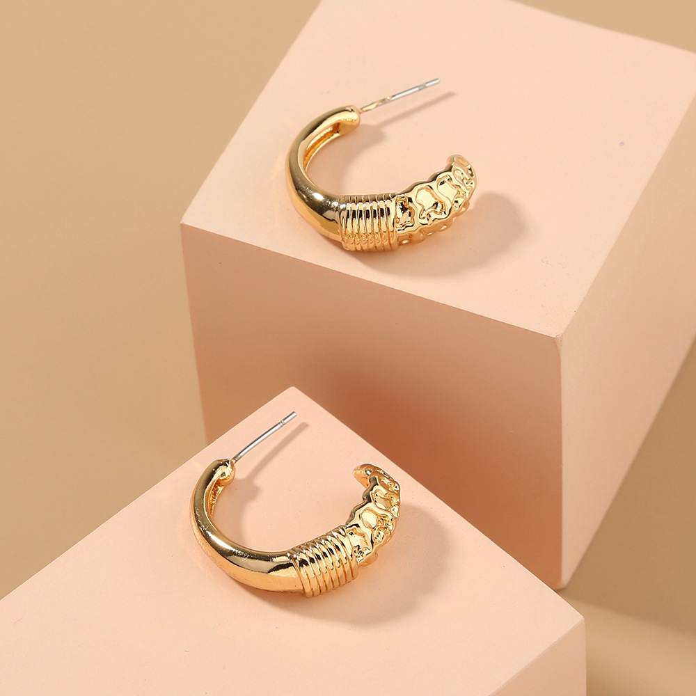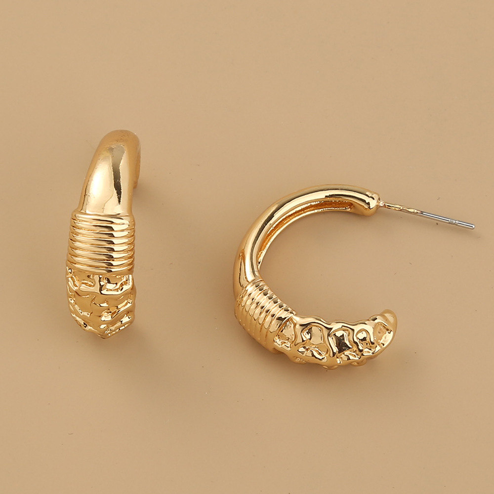 Jewelry Metal Texture C-shaped Alloy Earrings Simple And Versatile Fold Creative Shape Earrings