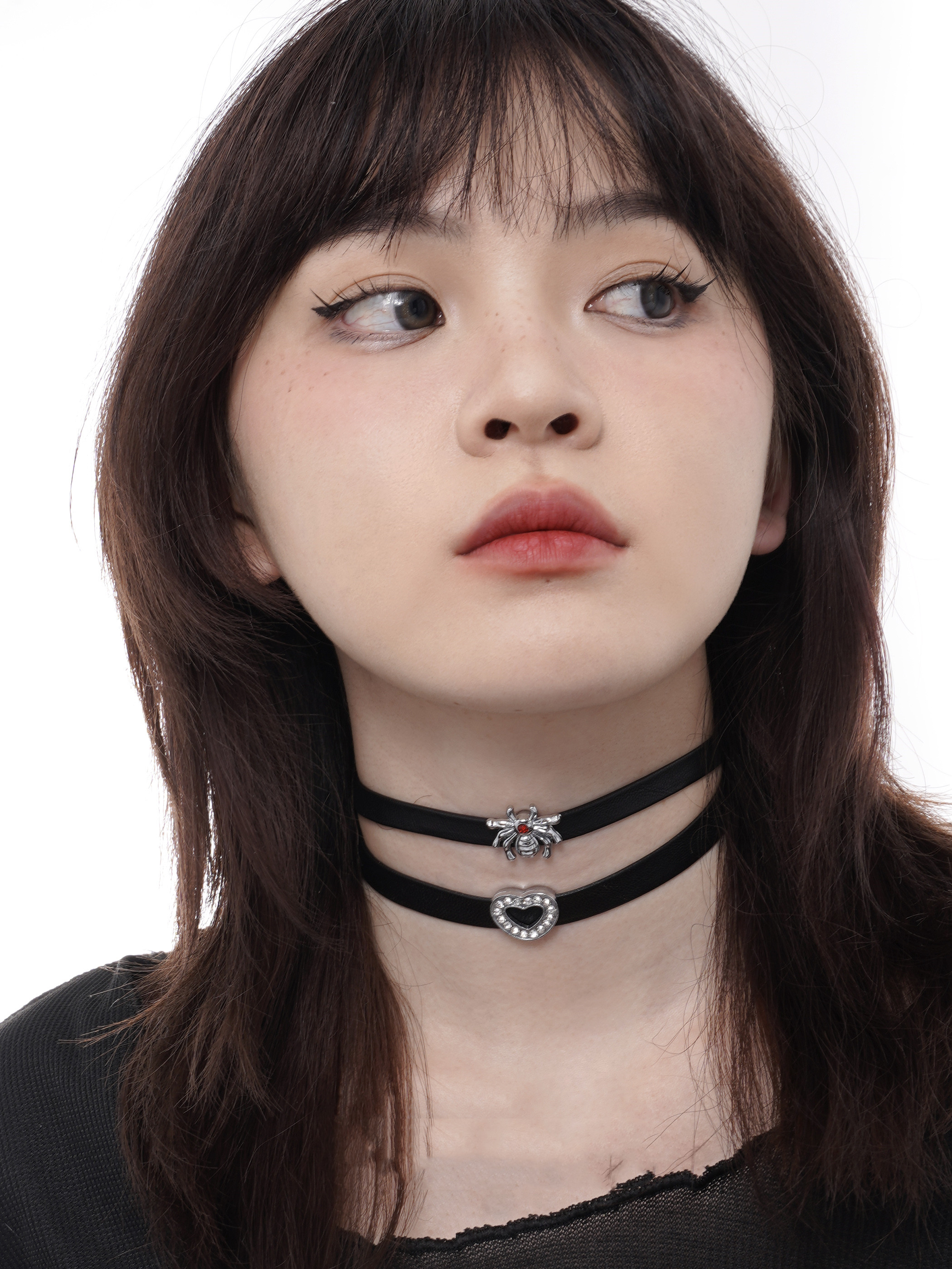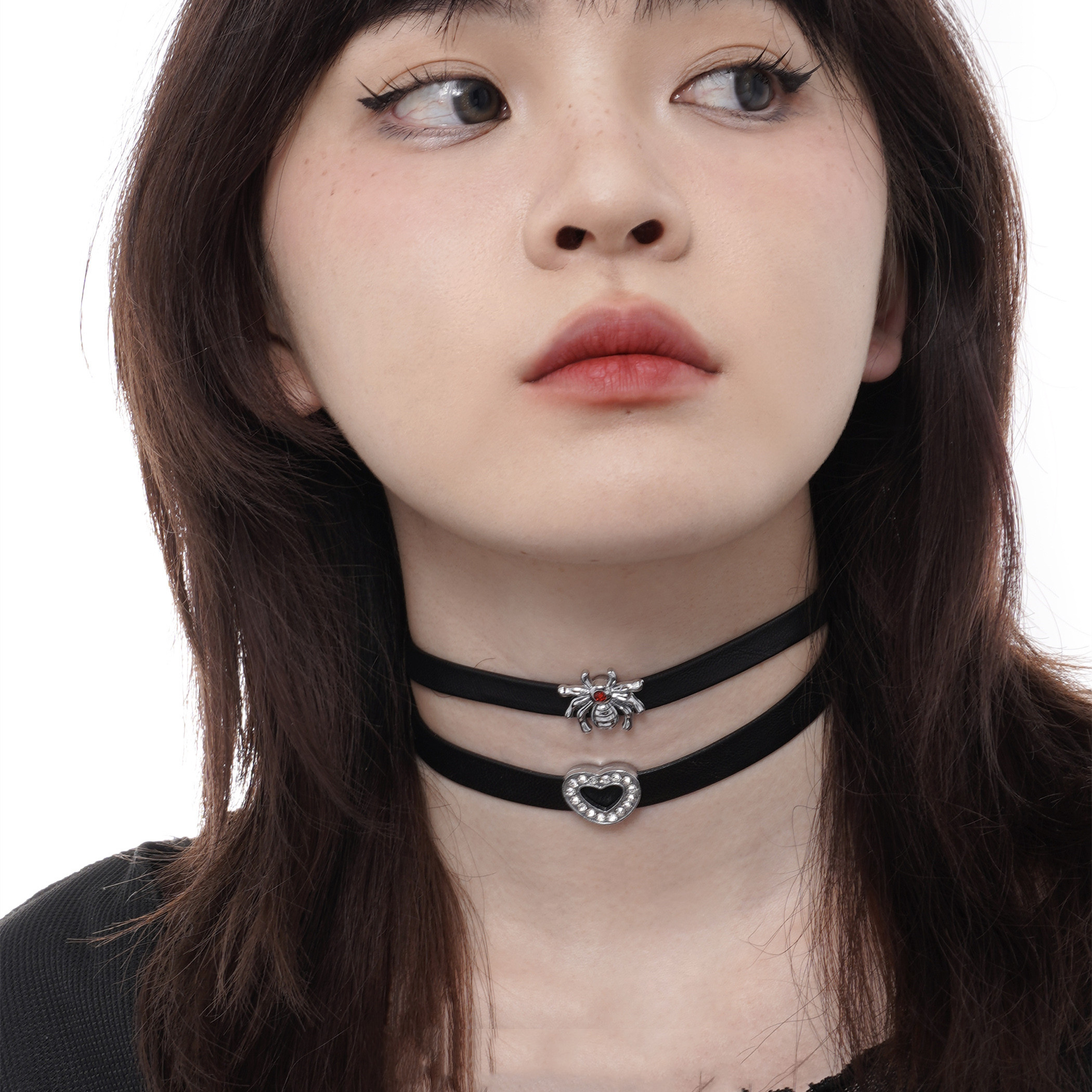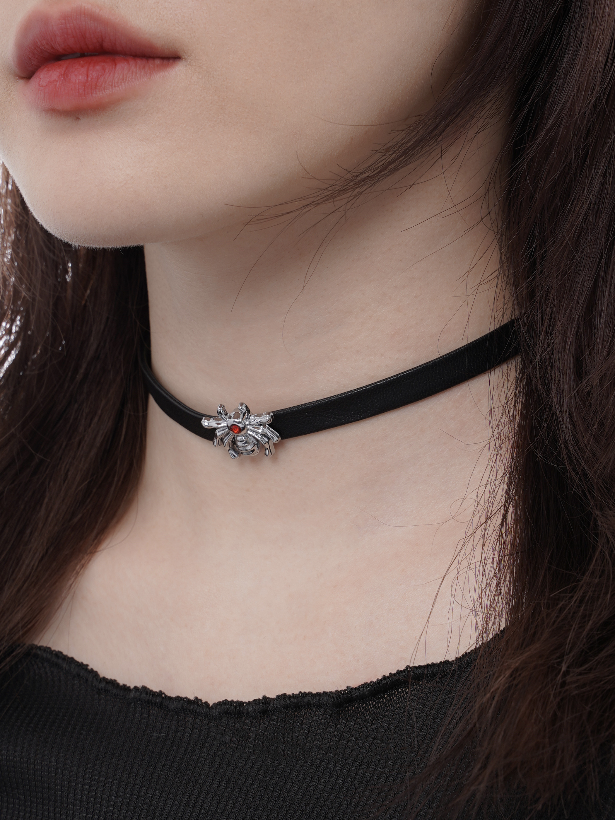Material: imitation leather black rope, alloy heart spider