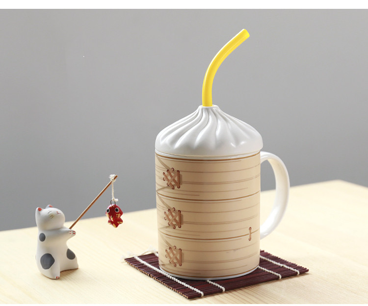 Name: Xiao Long Bao MugMaterial: CeramicCapacity: 400mlCup size: 13cm high 8cm bottomSpoon size: height 5cm 2cmStraw size: length 20cmUnderglaze color decal cup body, large capacity makes the cup beautifulAt the same time, it is more useful.