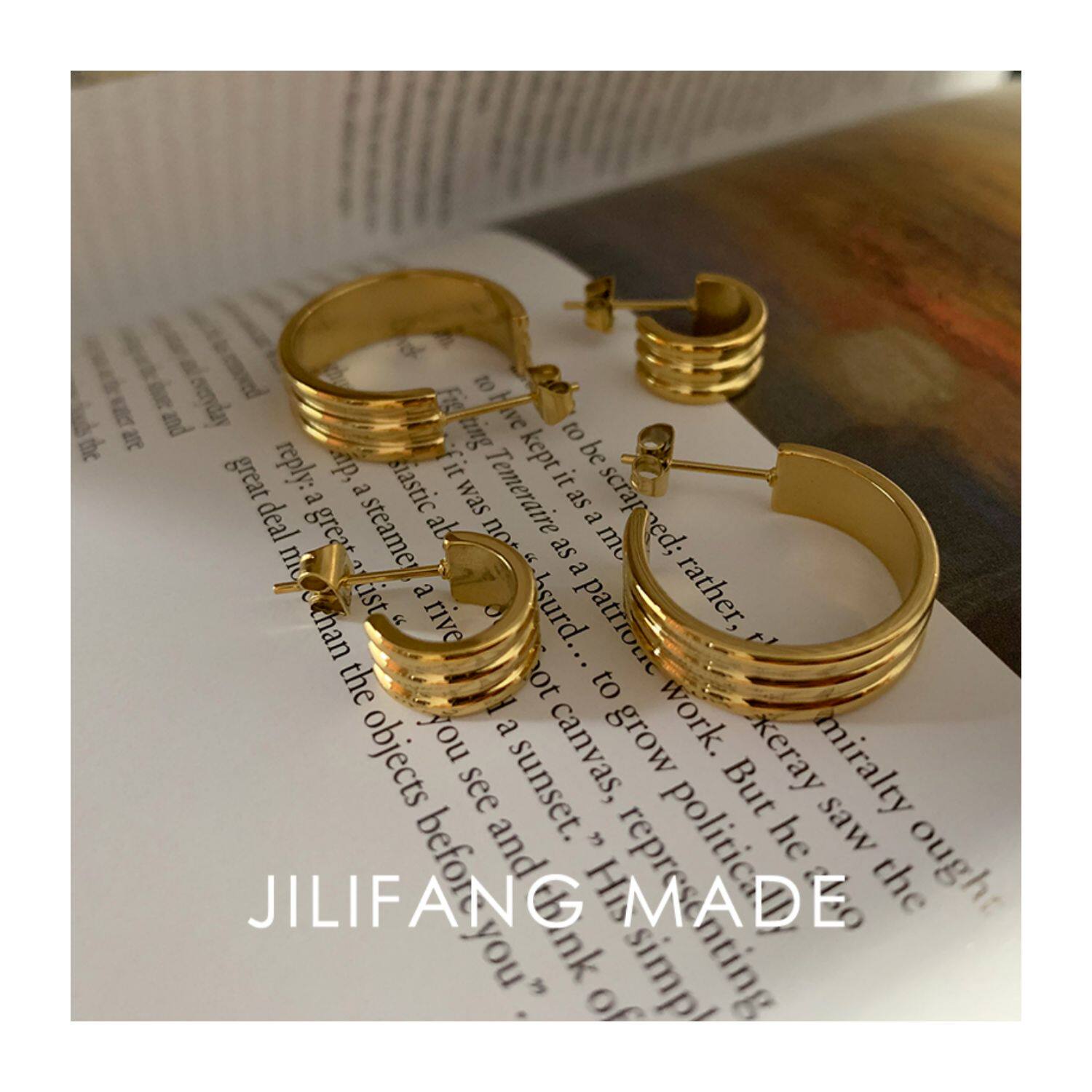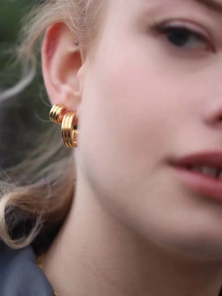 hollow three-coil earrings
