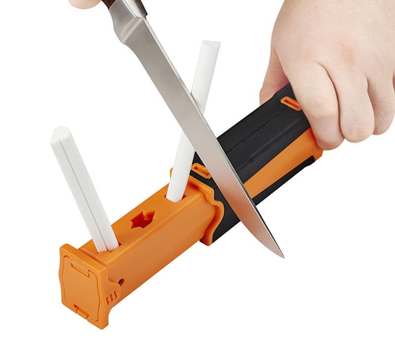 The triangular edge of the ceramic rod is used to grind serrated knives. Even a very small serrated blade can smoothly grind back and forth on the edge of the triangle.