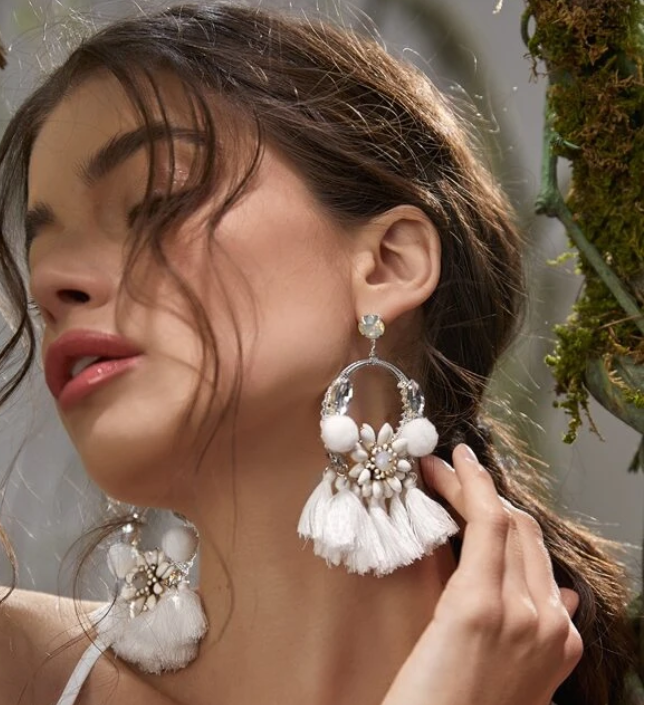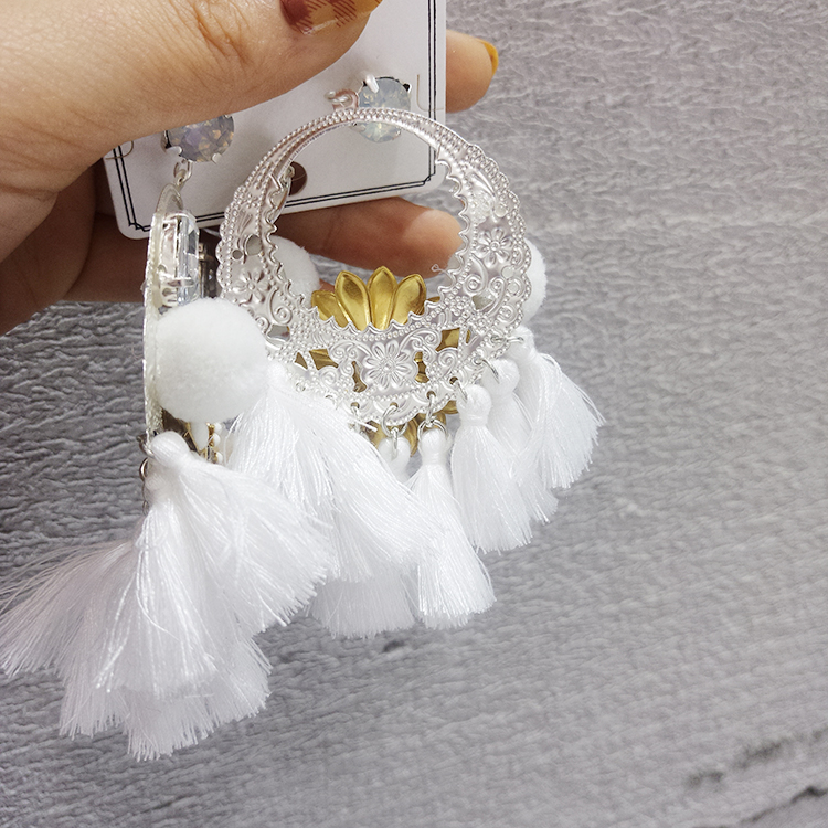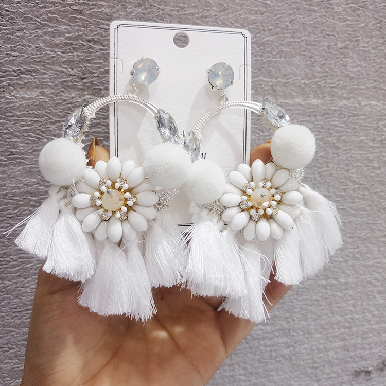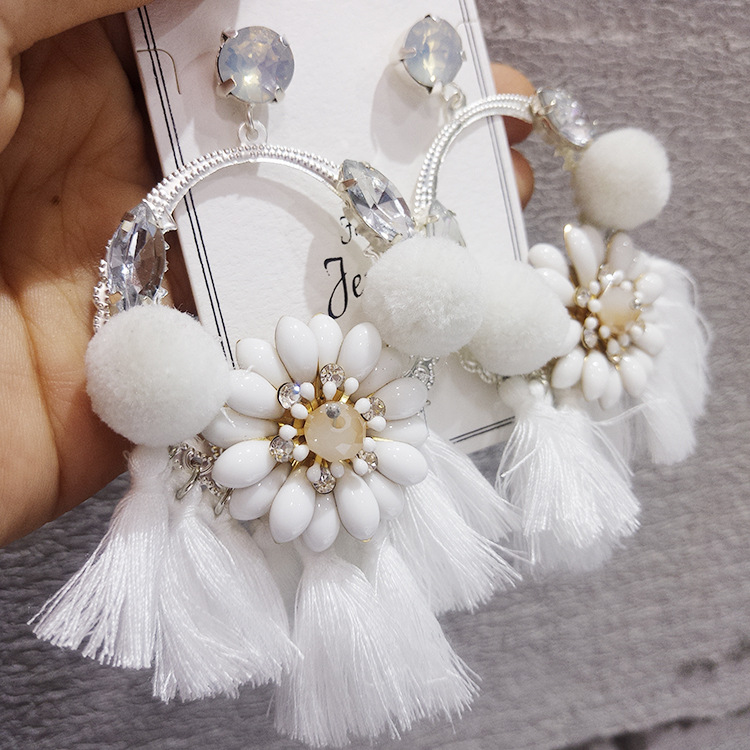 Europe and the United States exaggerated vacation wind flowers fringe long hair hair ball female personality cold wind earrings earrings clip