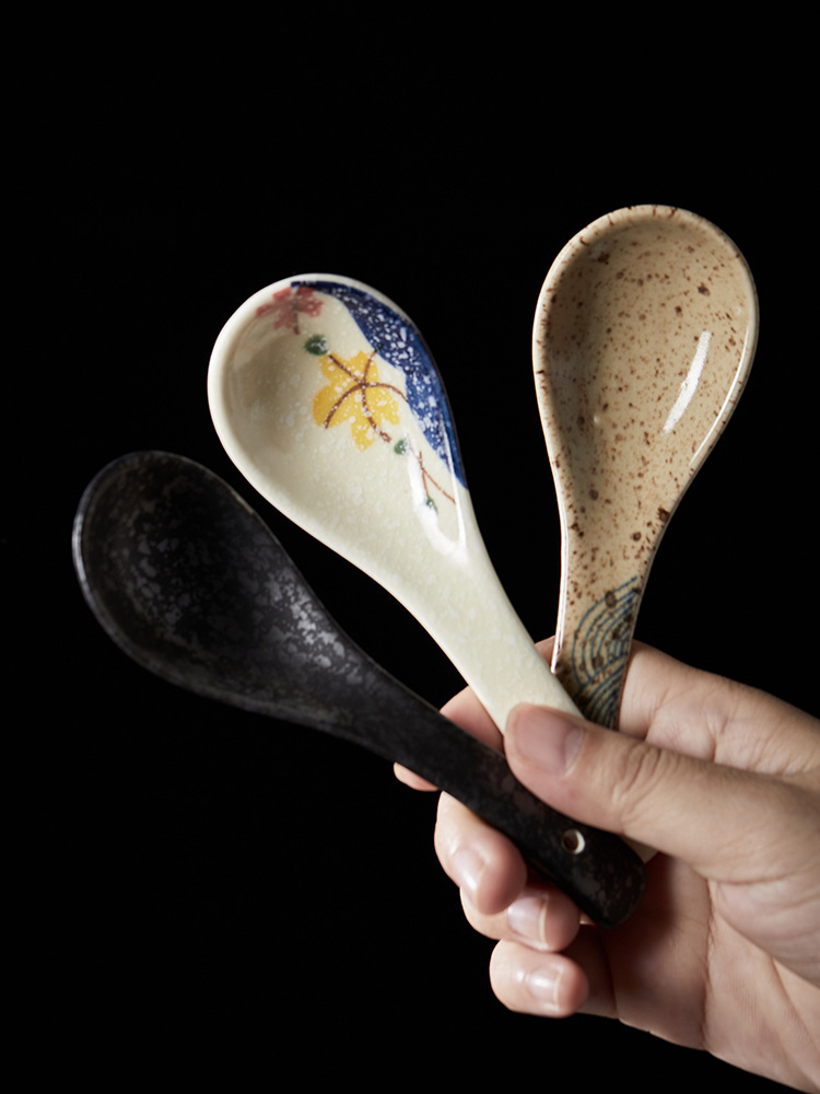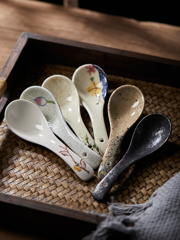 Small Household Spoon Hand-Painted Ceramic Spoon Rice Spoon Soup Spoon Ceramic Spoon Specialty Restaurant Spoon