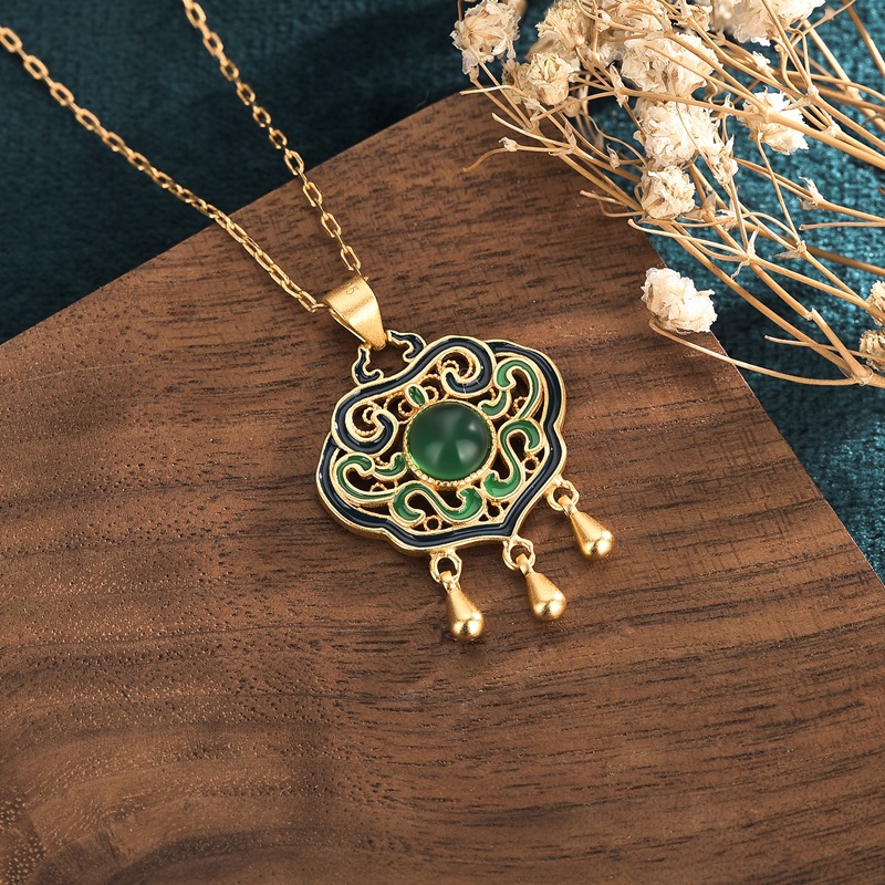 Material: AlloyTreatment process: inlaid jadeType: pendant, pendantChain style: O-chainWhether to bring a pendant: YesExtension chain: 10cm or lessPendant material: alloy