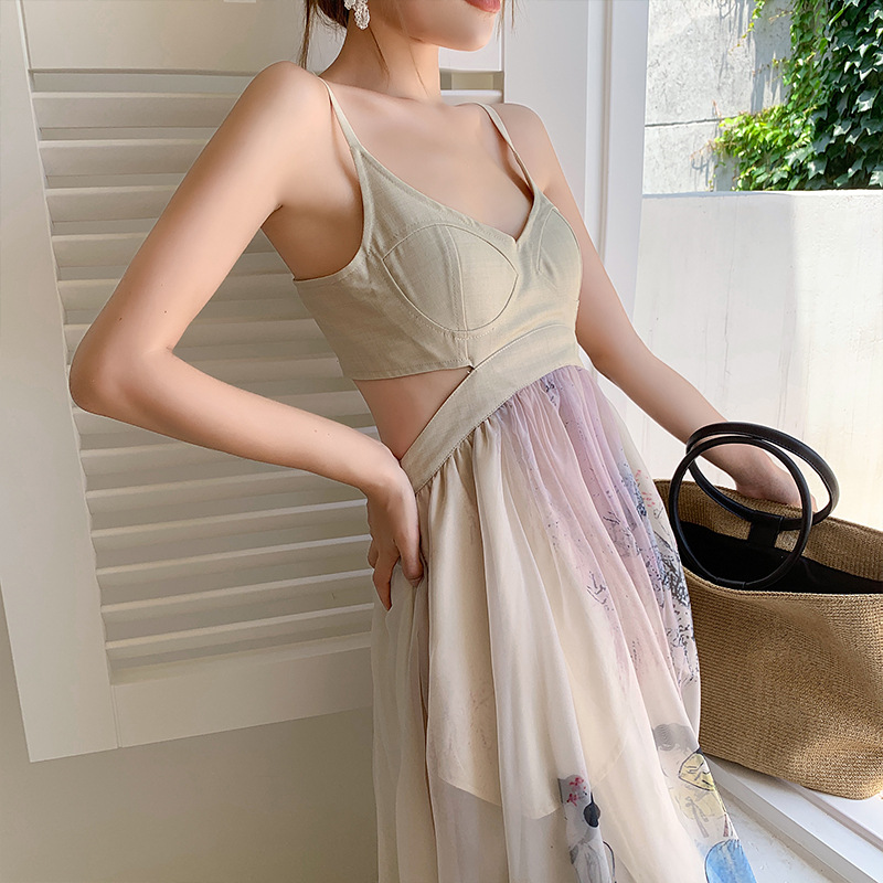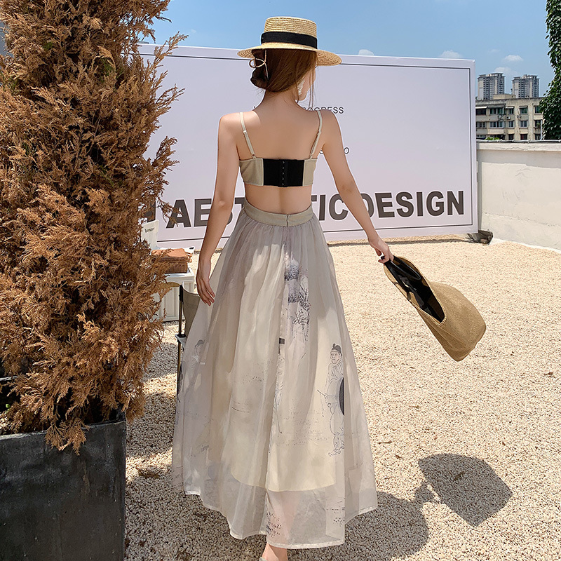Pattern: colorProcess: printing/dyeingPopular elements: printing, backless, stitchingMain fabric composition: polyester fiber (polyester)Size: S, M, L