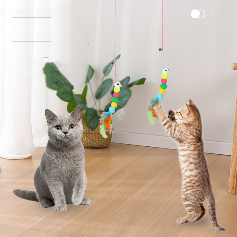 Material: plushProduct category: funny cat stickColor: Caterpillar (random paper/feather), mouse gray and white random, tassel flower, big-eyed dragonfly
