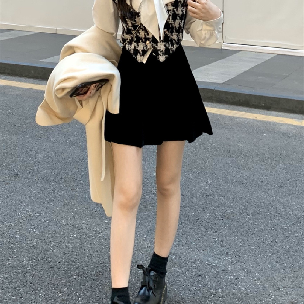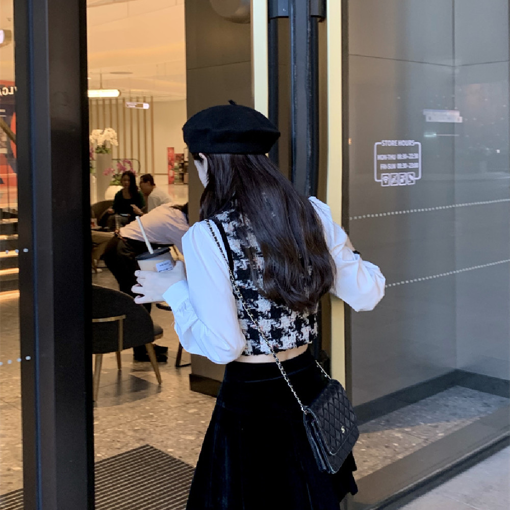B: Shirt+waistcoat+velvet skirt