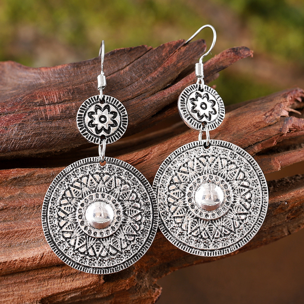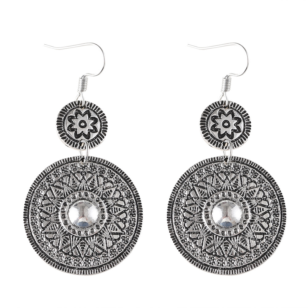Product information:Treatment Process: Electroplating Color: antique silver pairs Applicable population: Female Material: zinc alloy Popular elements: round Style: Retro