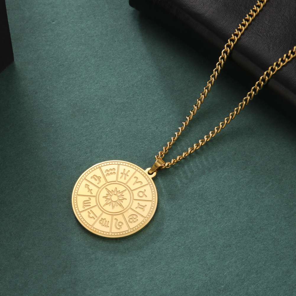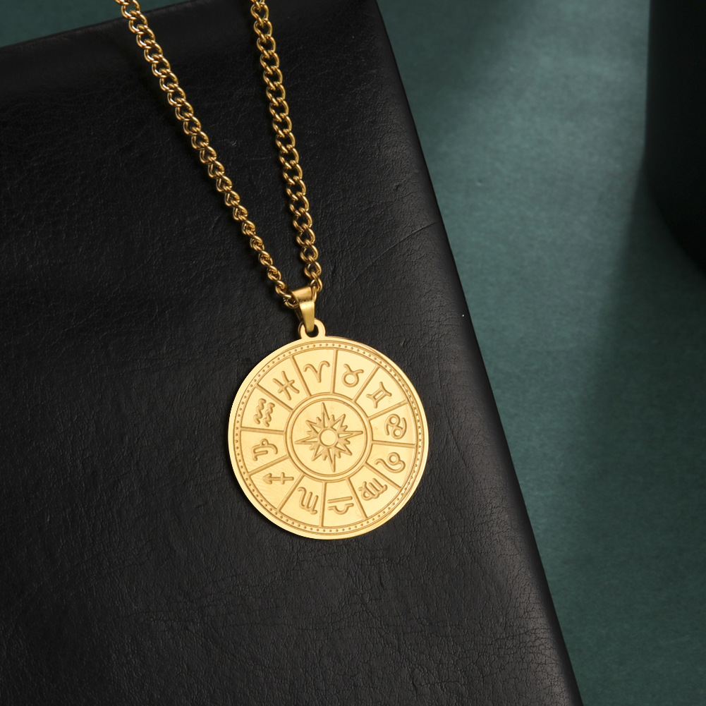 Material: titanium steelTreatment process: electroplatingType: necklaceStyle: UnisexShape: ConstellationChain: style cross chainColor: steel, gold