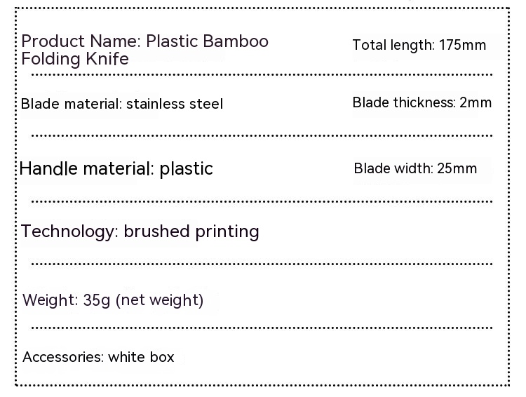 Specification: Plastic bamboo folding knife