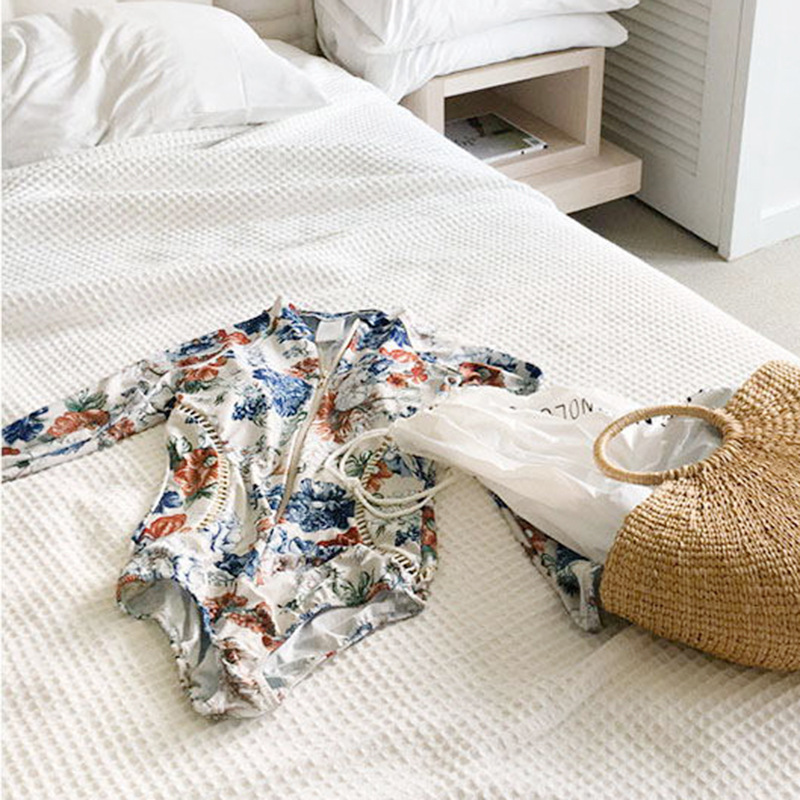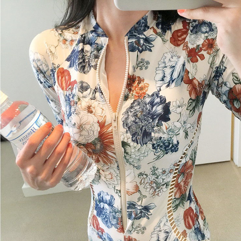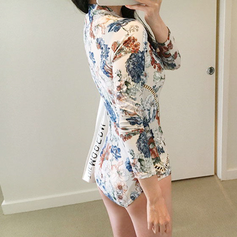 New South Korean printing one-piece swimsuit conservative small chest gathered thin sexy triangle piece swimsuit