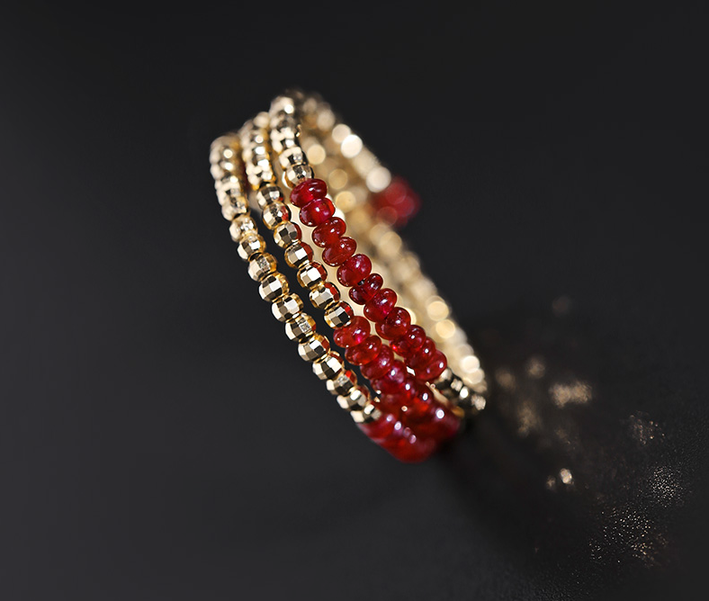 Product material: ruby, 18K goldDetails of main stone: the transverse diameter of main stone is about 2~3mm, with plain surface, pigeon blood red and good clarityWearing size: unlimited elasticity