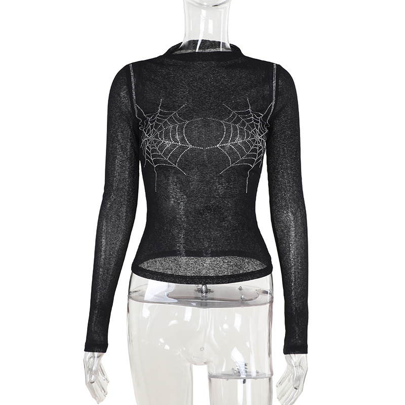 Product information: Pattern: spider web Color: Black Size: XS,S,M,L Style: slim fit Sleeve type: regular sleeve Main fabric composition: Polyester (polyester fiber)