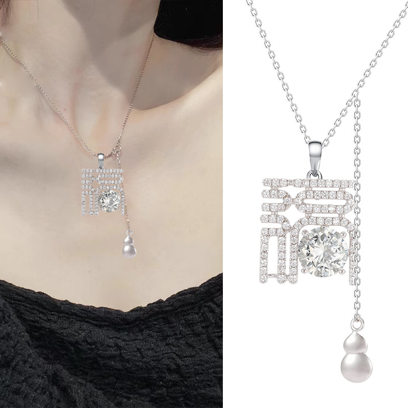 Product information:Color: fu character necklace lightPendant material: 925 silverChain style: cross chainMaterial: SilverPopular elements: fu characterApplicable people: womenStyle: New Chinese style