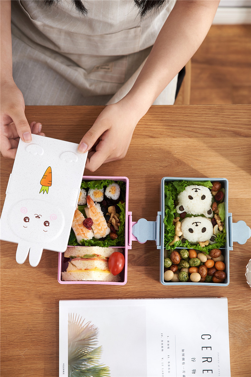 Specification:Material: Wheat strawShape: squareMicrowave: Not availableStyle: Modern and simplePattern: CartoonNumber of boxes: 60Product category: Lunch boxPacking list: