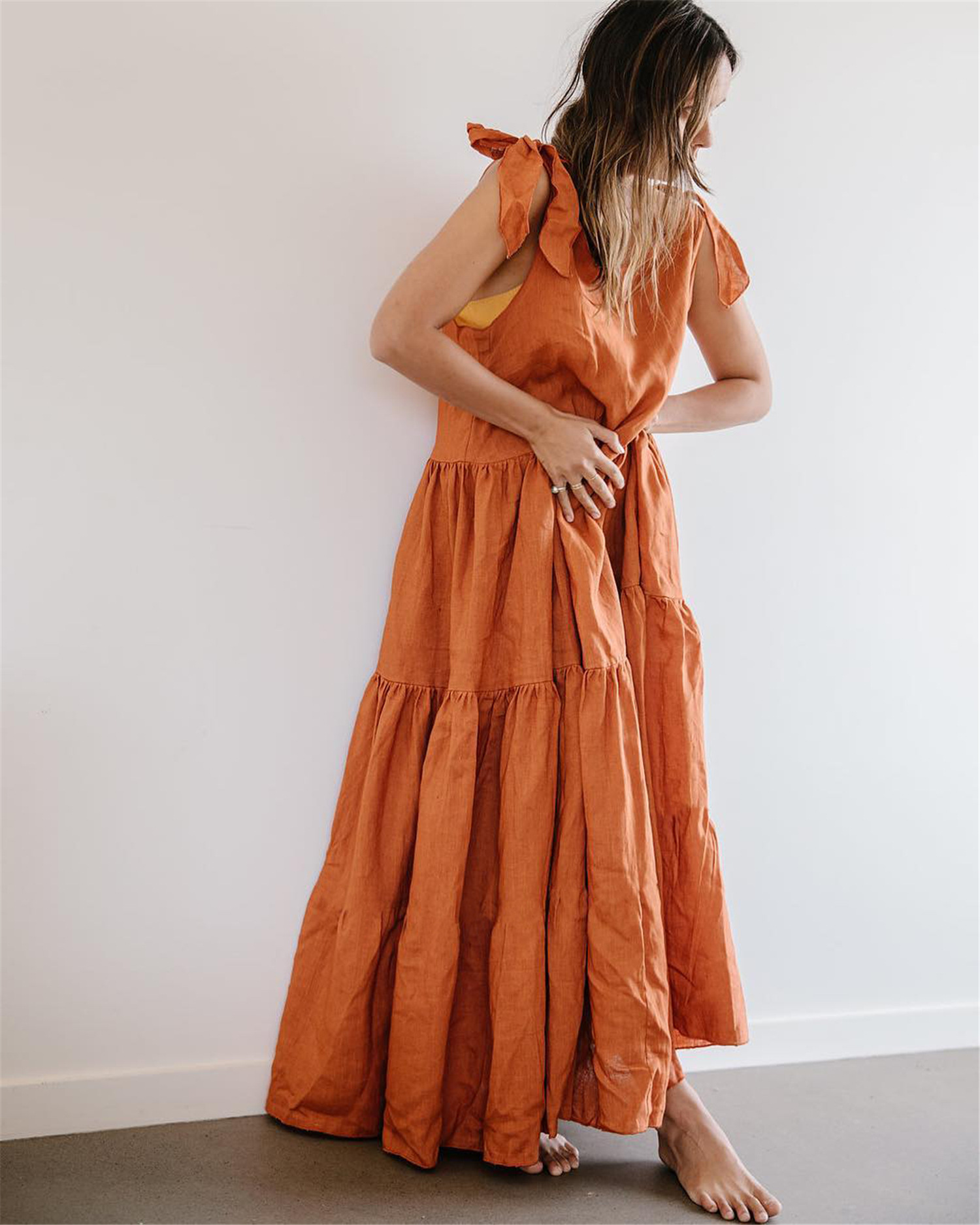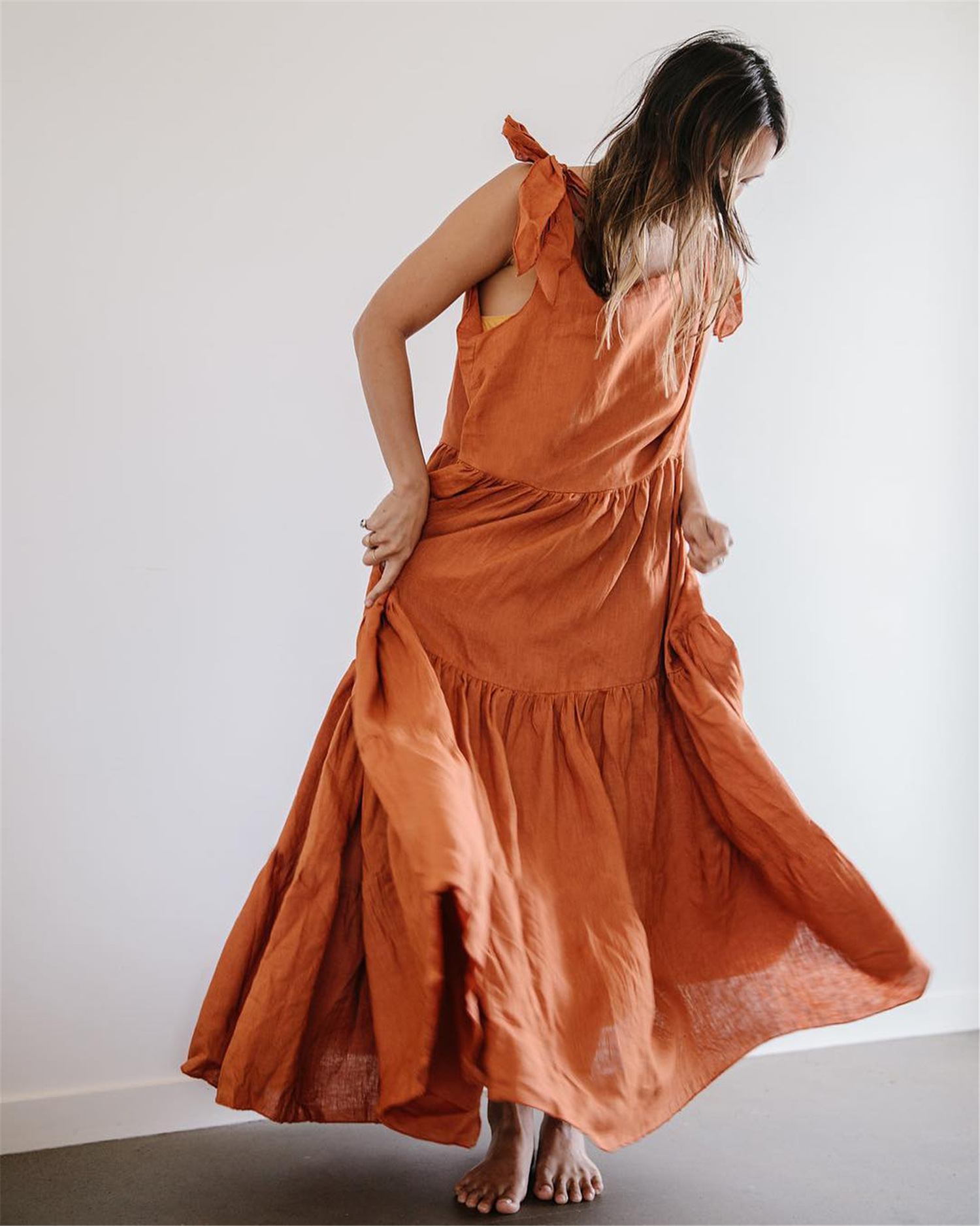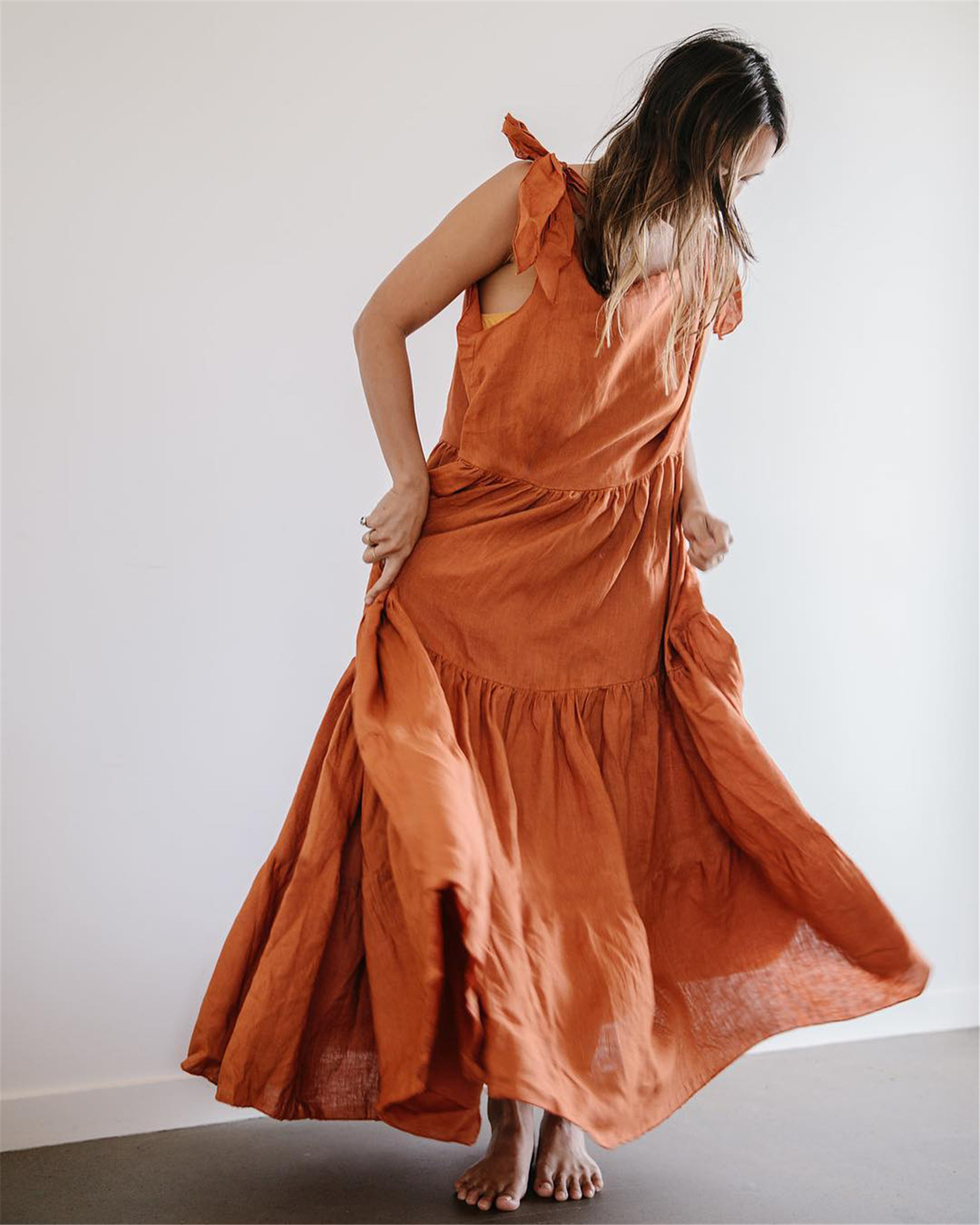 Popular elements: open back, solid color sleeveless