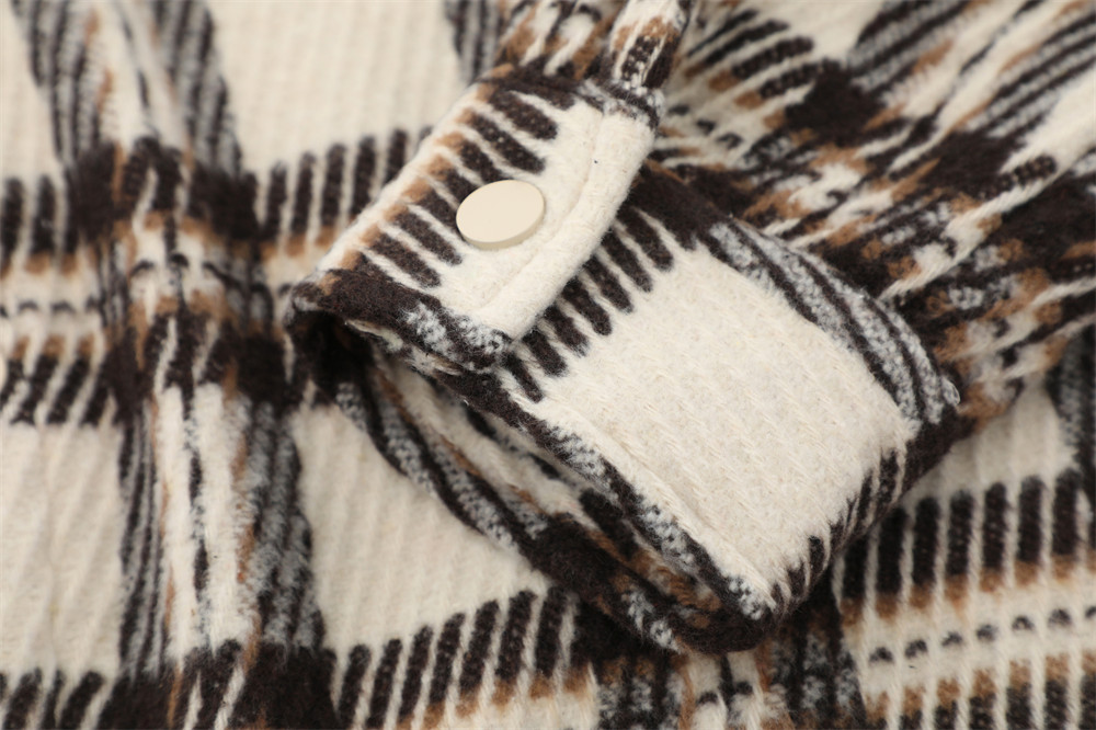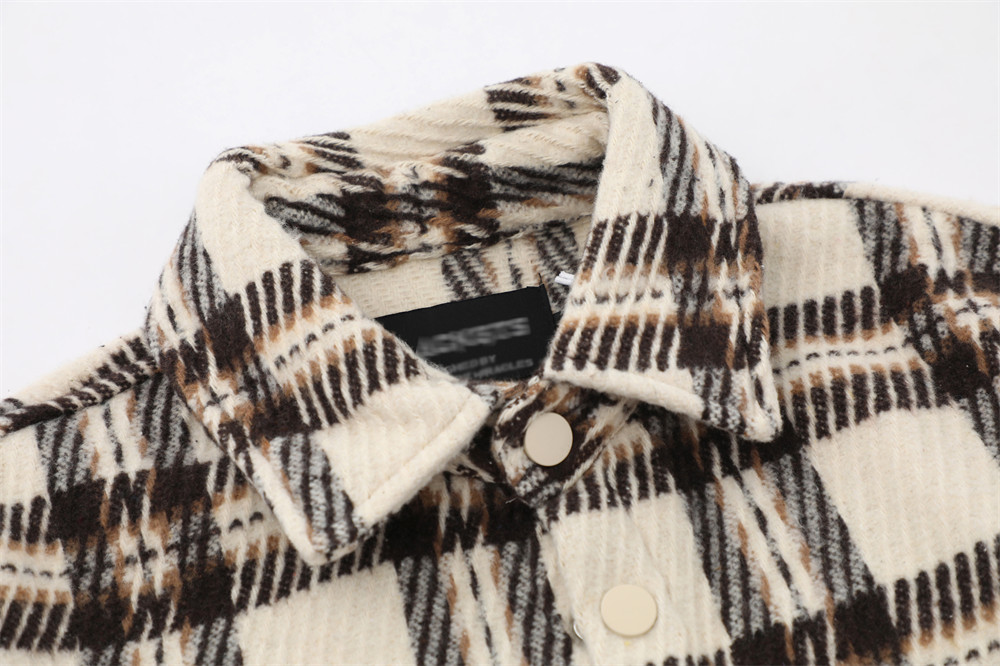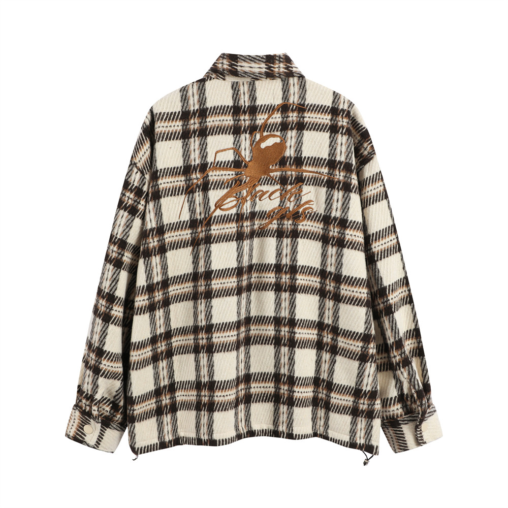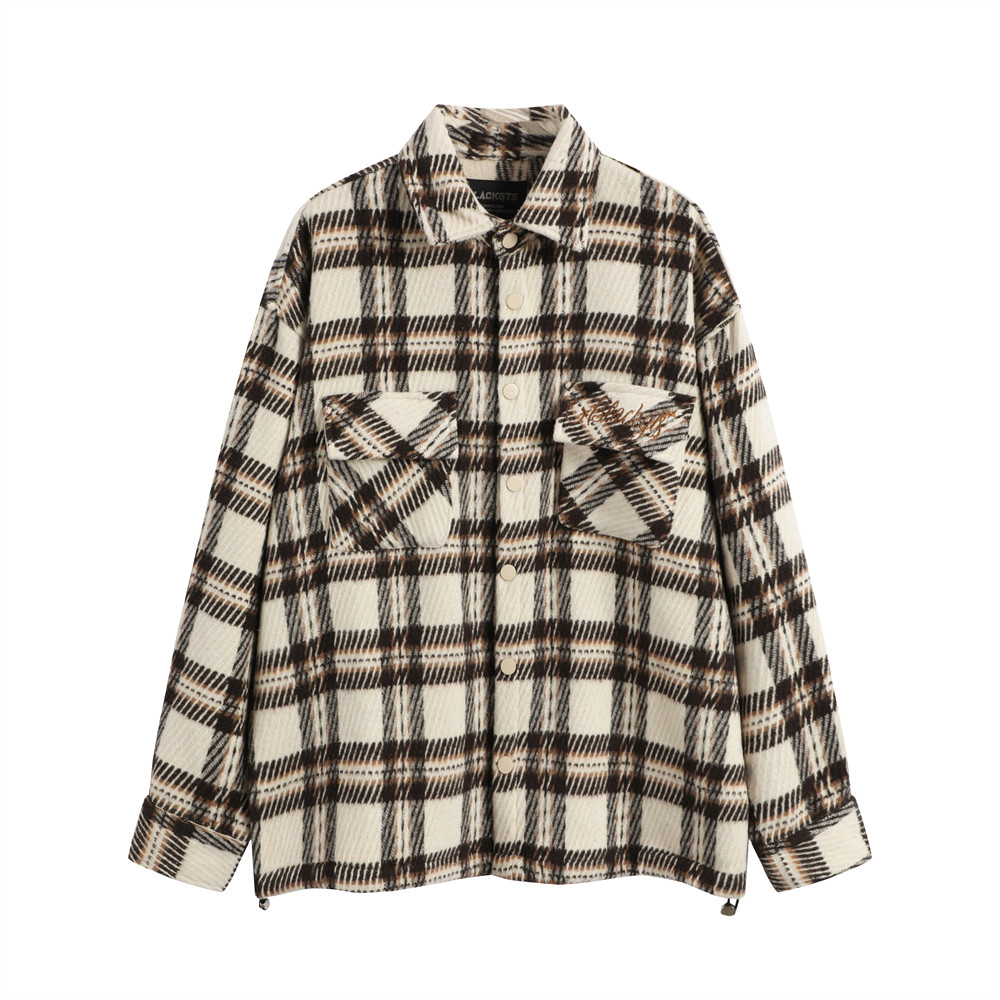 Product information: Pattern: Plaid Pocket Style: zipper and pocket Color: apricot, purple Size: M,L,XL Fabric name: Polyester Hem design: straight hem Style: Street Craft: embroidery/embroidery