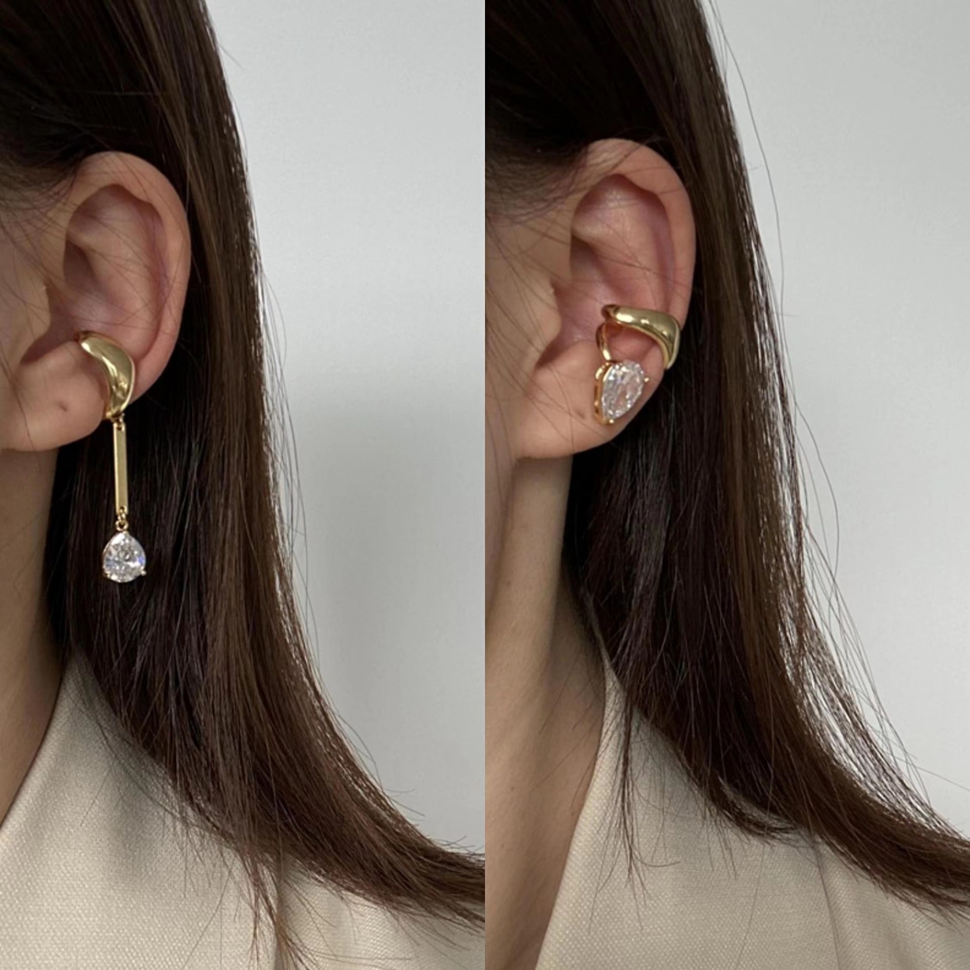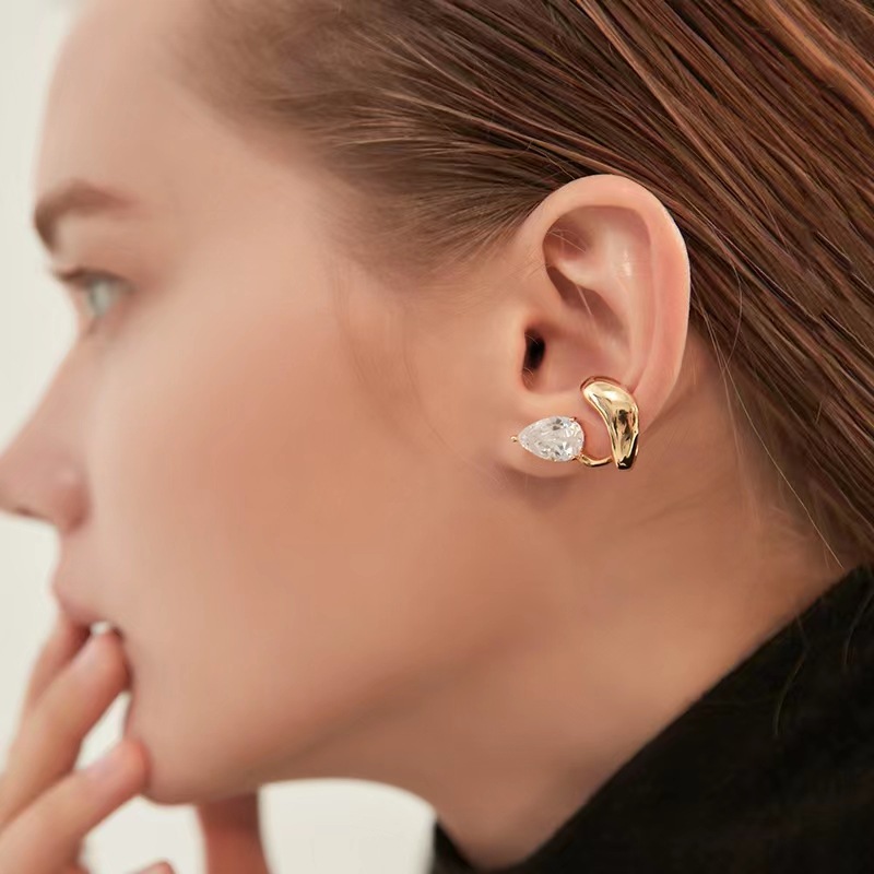 Asymmetric Zircon Non-piercing Ear Clip Long Ear Hanging
