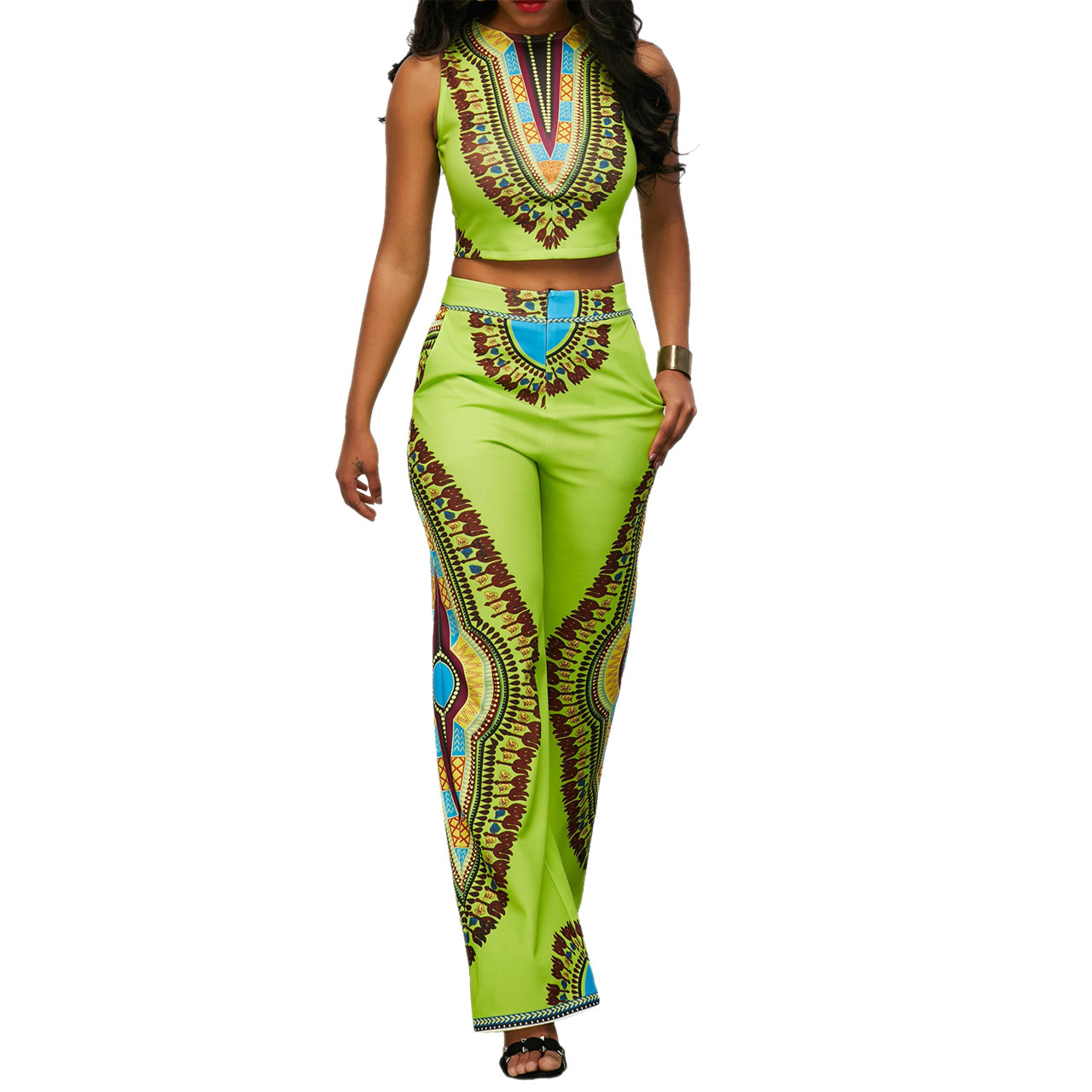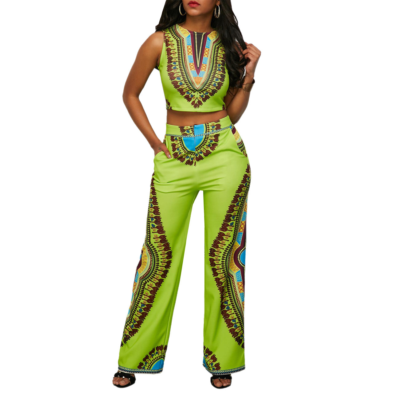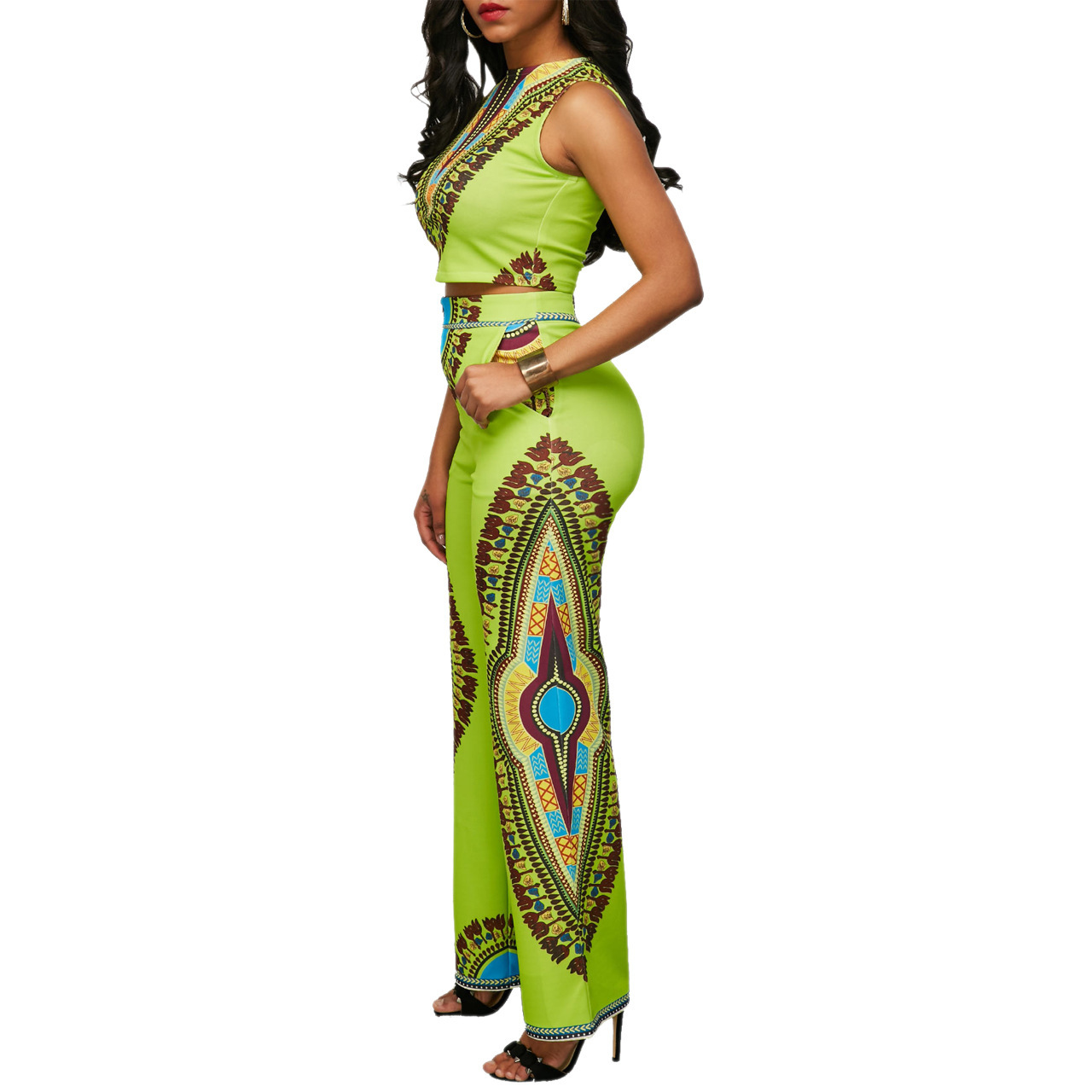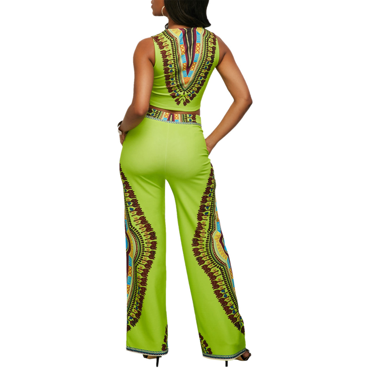 Style sexy Pattern print style pants suit top style vest Jacket sleeve length sleeveless pants style wide leg pants length pants Popular elements, printing, printing, printing and dyeing Fabric name Cotton blend Main fabric component Polyester (polyester) The content of the main fabric component 100% Color Green Size S, M, L, XL