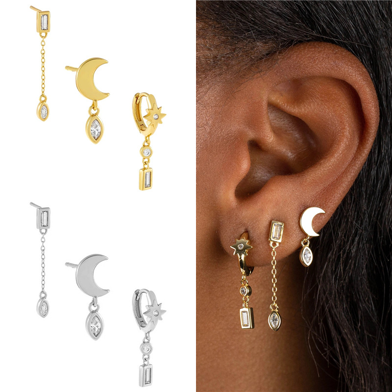 Product Details:Material: CopperStyle: Women'sShape: star, moonTreatment process: electroplatingColor: gold, platinum